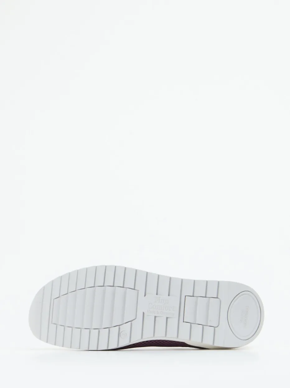 Bequemer Chic für jeden Schritt.Finn Comfort bietet mit diesem Komfort-Sneaker einen alltagstauglichen Damenschuh mit besonderem Materialmix. Ideal für entspannte Freizeitaktivitäten überzeugt das Modell Cerritos durch atmungsaktives Mesh in Pflaume und samtig angeschliffenes Nubukleder in Hellgrau. Die low-top-Silhouette mit tonaler Schnürung, gepolstertem Schaftrand und farblich abgesetzter Ferse betont den sportlich-minimalistischen Stil. Eine lederbezogene Einlegesohle mit Korkkern unterstützt ein angenehmes Fußklima und ist austauschbar. Die profilierte Gummisohle mit weißem Rand sorgt für Rutschfestigkeit und Komfort bei jedem Schritt. Lässt sich hervorragend zu legeren, soft-neutralen Outfits kombinieren. Ein Schuhkonzept, das Tragekomfort auf hohem Designniveau bietet.