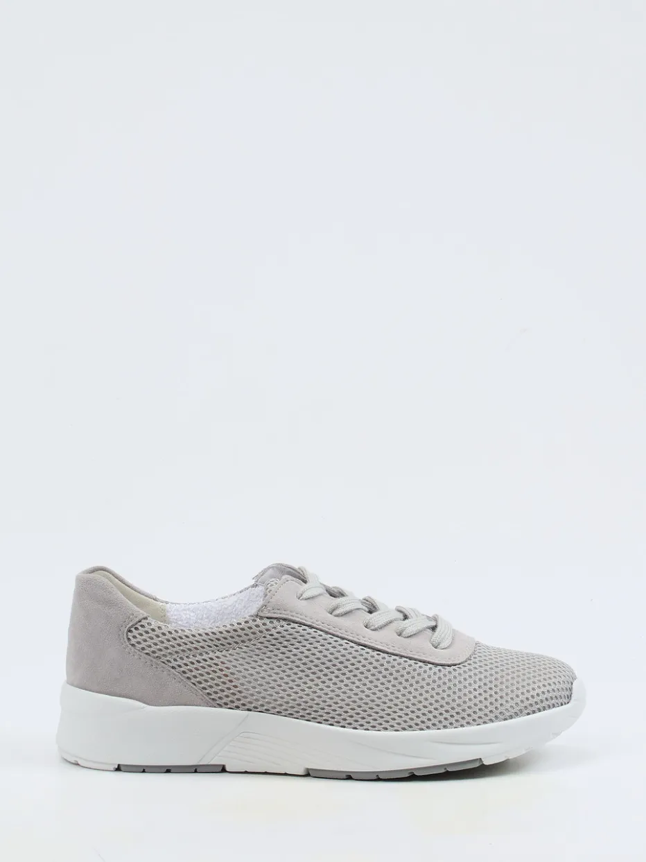 Komfort mit sportlicher Leichtigkeit.Semler präsentiert einen Damen-Komfort-Sneaker mit klarer Linienführung und hochwertiger Materialkombination. Ob beim Spaziergang oder auf dem Weg ins Café – der Sneaker sorgt dank seiner atmungsaktiven Mesh-Oberfläche und des samtig angeschliffenen Veloursleders in Hellgrau für angenehmes Fußklima. Die abgerundete Form mit gepolstertem Fersenbereich und das auswechselbare Fußbett bieten erhöhten Komfort bei Weite H. Tonige Schnürung, weiße PU-Luftpolstersohle mit grauem Profil und strukturierte Oberfläche fügen sich dezent ins minimalistische Design. Stilistisch greift das Modell Trends wie Quiet Comfort und Functional Aesthetics auf. Ideal kombinierbar zu Relaxwear und urbanen Casual-Looks. Ein Qualitätsschuh für Alltag und Freizeit – mit bewährter Semler-Passform.