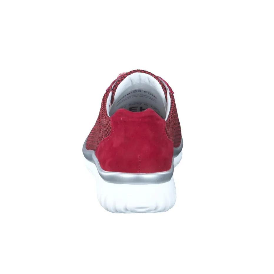 Sportiver Komfort trifft modernes Design.Semler präsentiert mit diesem Komfort-Sneaker ein Modell, das Alltagstauglichkeit und stilvolle Ausstrahlung vereint. Ideal für leichte Spaziergänge oder ausgedehnte Tage in der Stadt eignet sich dieser Schuh dank seiner Kombination aus rot eingefärbtem Mesh und samtig gestaltetem Veloursleder. Die rund gearbeitete, sportliche Form erhält durch silberfarbene Akzente an der Gummisohle und den zweifarbigen Schnürsenkeln eine moderne Note. Leder- und Textilfutter, gepolsterter Schaftrand und das Wechselfußbett bieten hervorragenden Tragekomfort. Inspiriert von Streetwear und Minimalismus passt das Modell besonders gut zu casual Looks wie Jeans oder leichten Jacken. Für komfortbewusste Damen mit Anspruch an moderne Alltagstauglichkeit.