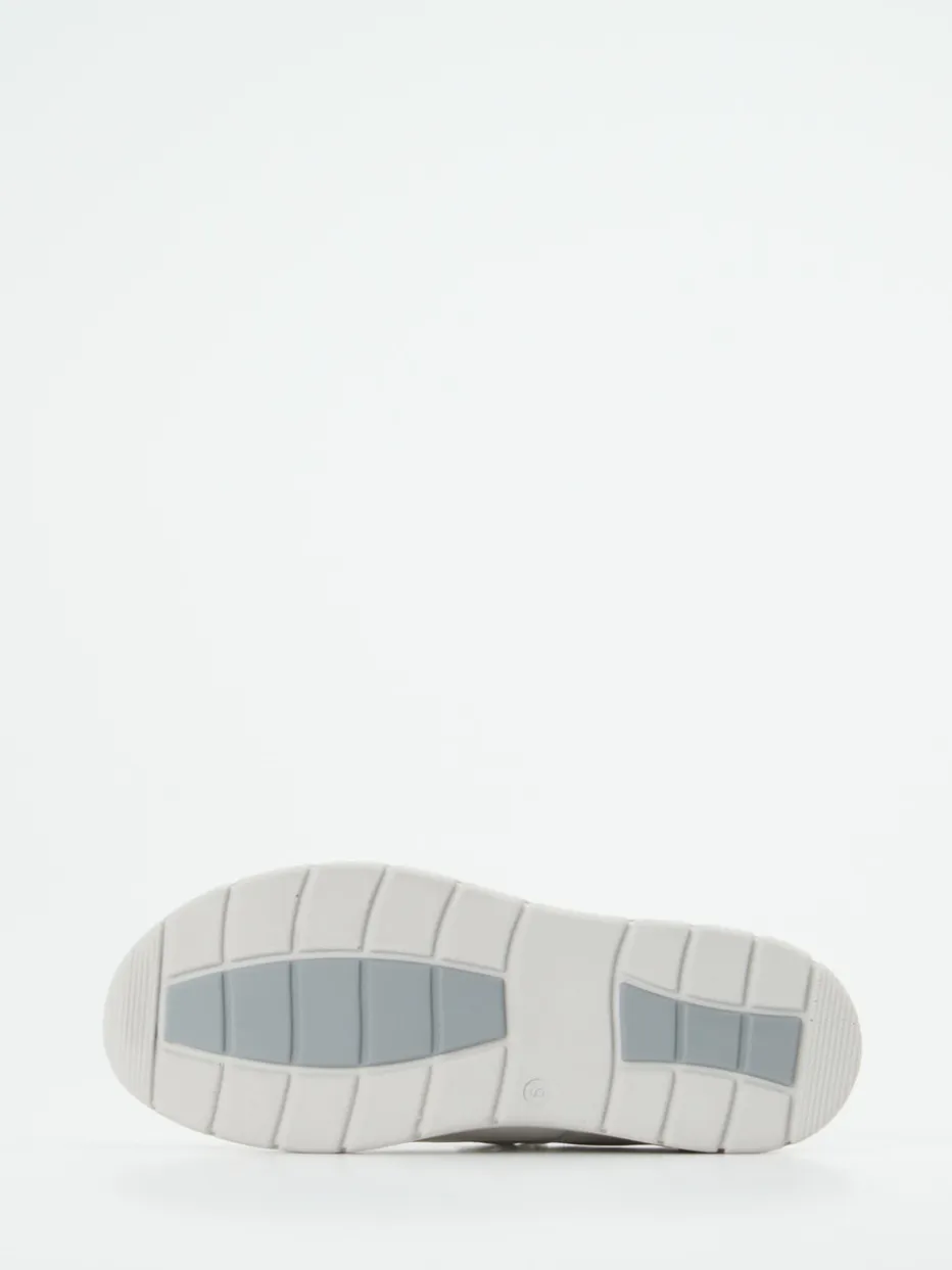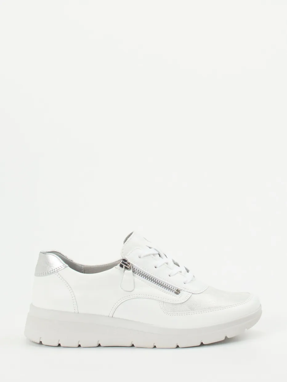Elegant und bequem zugleich.Stuppy präsentiert mit diesem Komfort-Sneaker ein Damenmodell der Linie Vegas, das durch Detailreichtum und Tragekomfort überzeugt. Ideal für lange Tage im Alltag: Das flexible Stretchmaterial beugt Druckstellen vor, während Glattlederpartien in Weiß einen glänzenden Akzent setzen. Die ergonomische Silhouette wird durch seitliche Reißverschlüsse funktional ergänzt und mit silberfarbenen Metallic-Details an Ferse und Vorderkappe veredelt. Ein Reflexor-Massagefußbett sowie die rutschhemmende PU-Sohle sorgen für federnden Laufkomfort. Inspiriert von Streetwear-Elementen und minimalistischen Styles, lässt sich der Sneaker vielseitig kombinieren – etwa mit weißen Crossbody-Taschen oder silbernen Accessoires. Stuppy steht für durchdachten Komfort und moderne Alltagstauglichkeit.