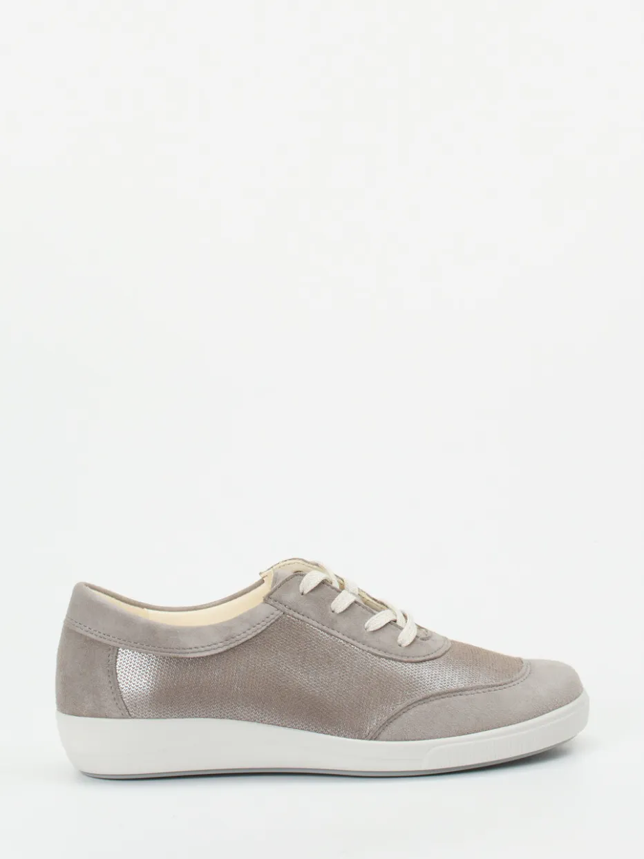 Soft Neutral trifft Komfort.Christian Dietz liefert mit diesem Damen-Komfort-Sneaker genau das Richtige für entspannte Tage in stilvoller Zurückhaltung. Die Kombination aus stretchigem Obermaterial und samtig angeschliffenem Veloursleder sorgt für ein weiches Tragegefühl und angenehme Anpassung. Das harmonische Ton-in-Ton-Design in Taupegrau wird durch weiße Schnürsenkel und hellgraue Akzente ergänzt. Besondere Extras wie das lederbezogene, herausnehmbare Korkfußbett, die dämpfende Laufsohle mit Schockabsorber und die großzügige Weite H bieten hohen Komfort im Alltag. Inspiriert vom Trend „Soft Neutrals“ lässt sich der Schuh perfekt zu Strick und Denim kombinieren. Ein durchdachter Sneaker mit Fokus auf Funktionalität und cleanem Stil.