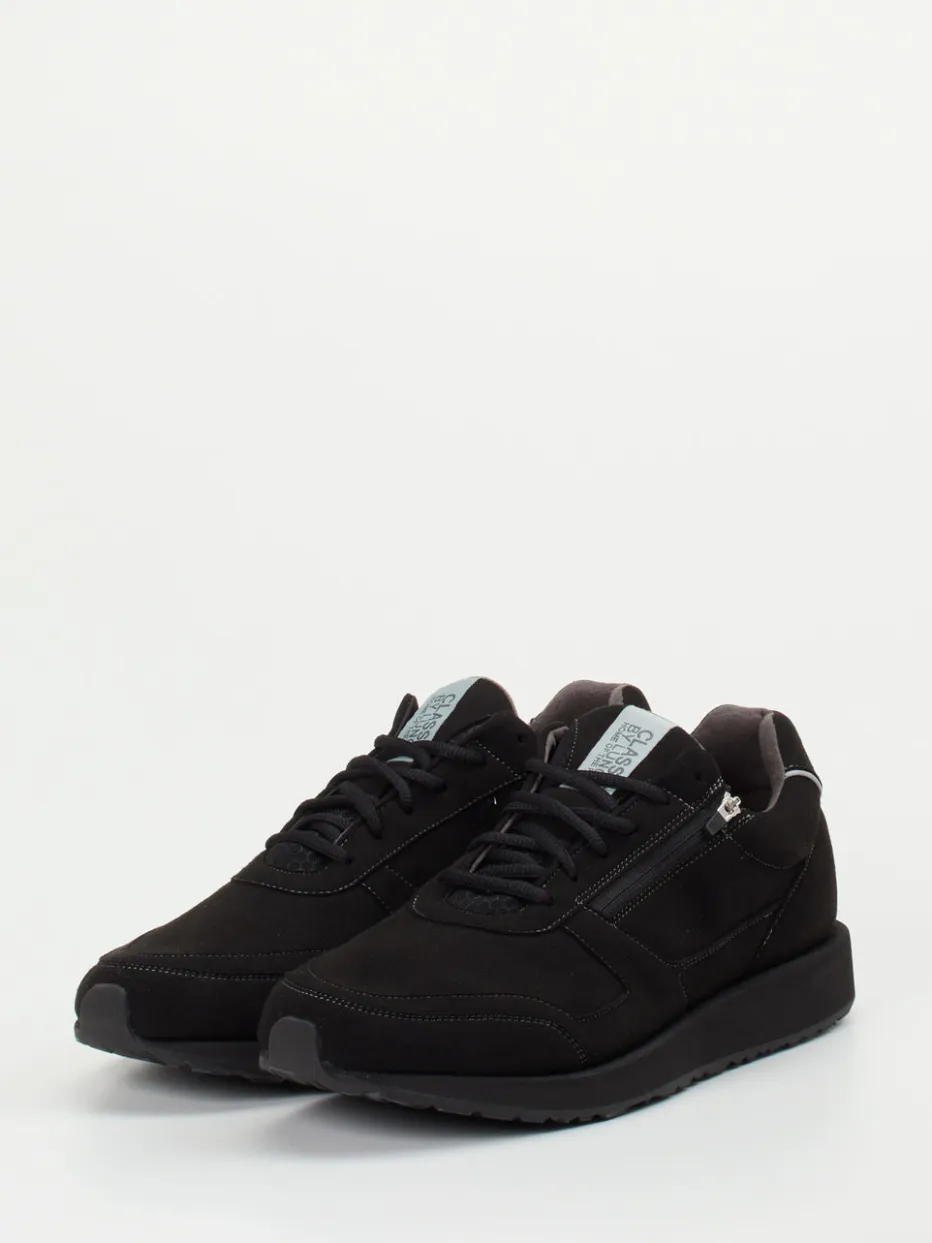 Minimalistischer Komfort für jeden Tag.Lunge präsentiert mit diesem Sneaker ein sportliches Herrenmodell für komfortorientierte Freizeitlooks. Weiches veganes Hochleistungsmaterial in Velourslederoptik trifft auf reflektierende Fersendetails und ein textilgefüttertes Innenleben mit gepolsterter Schaftrand-Partie. Die Kombination aus Schnürung und seitlichem Reißverschluss erleichtert das Anziehen, während die solide gearbeitete Gummisohle und das herausnehmbare Fußbett für Funktionalität sorgen. Farblich dominiert ein tiefes Schwarz, akzentuiert durch hellgraue Kontrastnähte in klassisch-sportlicher Silhouette – ideal für Fans von Retro Runner Trends und unaufdringlichem Design. Stimmig umgesetzt in der DNA von Lunge: komfortbetont, dezent und zweckvoll durchdacht.