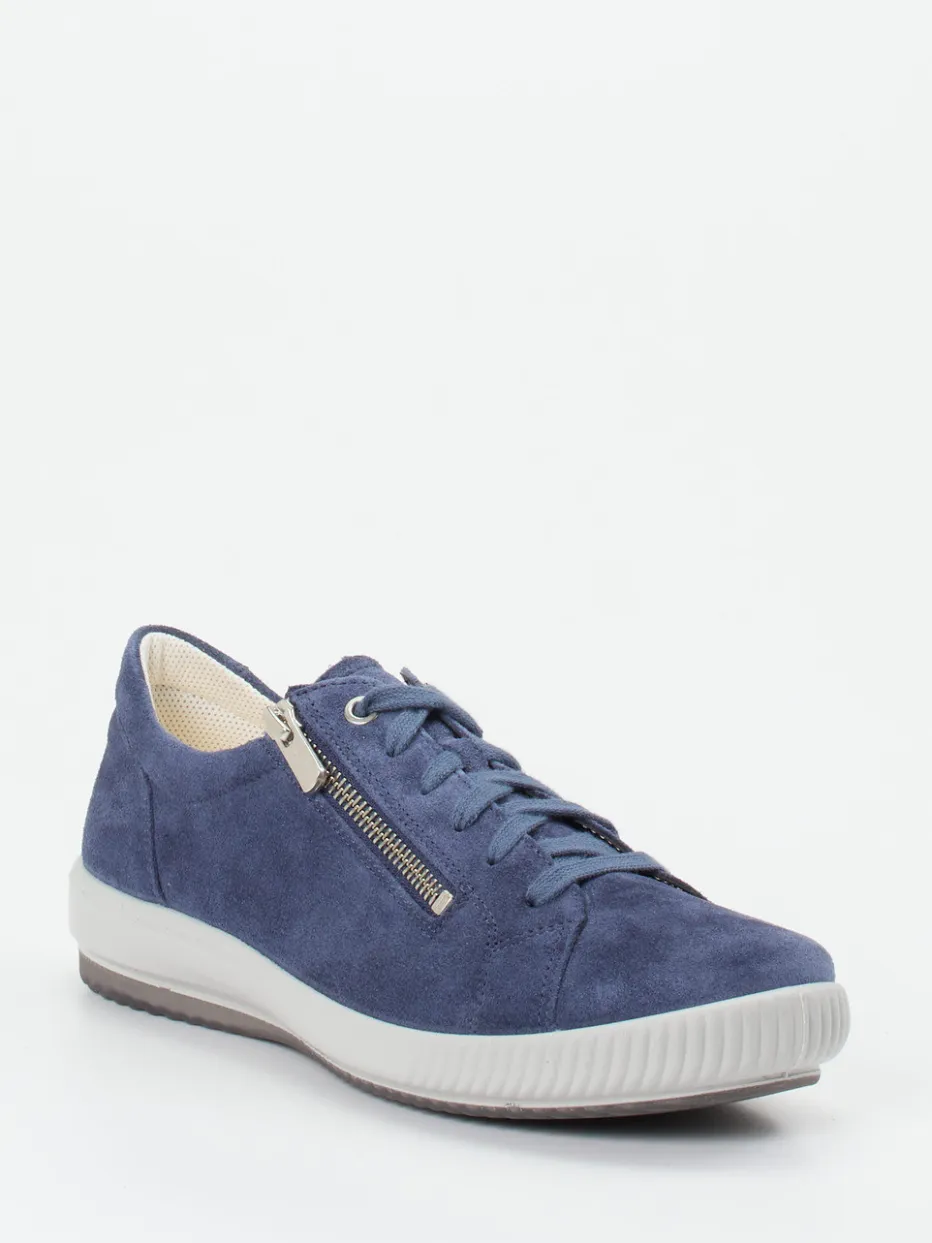 Leichtfüßig durch den Alltag.Legero präsentiert einen vielseitigen Damen-Komfortsneaker für Freizeit und Alltag. Wenn Bequemlichkeit gefragt ist, überzeugt dieses Modell mit einer weichen, gepolsterten Verarbeitung und funktionalen Details. Das samtig angeschliffene Veloursleder in dezentem Jeansblau harmoniert mit naturweißen Akzenten und einem silberfarbenen Reißverschluss. Eine leichte, rutschhemmende Gummisohle und ein lederbezogenes Wechselfußbett sorgen für Laufkomfort. Dank Kombination aus Schnürung und Reißverschluss gelingt das An- und Ausziehen ohne Mühe. Im Stil von Soft Neutrals interpretiert, passt der Sneaker ideal zu casual Outfits. Legero vereint angenehme Passform mit moderner Alltagstauglichkeit.