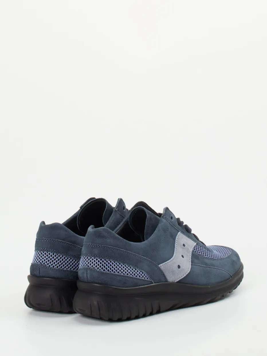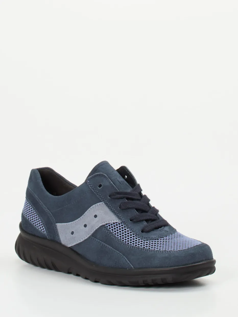 Leichtigkeit trifft Komfort im Alltag.Semler präsentiert mit diesem Komfort-Sneaker ein Modell für entspannte Freizeit-Momente. Die Kombination von samtig angeschliffenem Veloursleder in jeansblauem Ton und atmungsaktiven Mesh-Zonen überzeugt durch funktionale Leichtigkeit und moderne Zurückhaltung. Die runde Silhouette, tonale Nähte und eine flexible Schnürung sorgen für ein stimmiges Design mit perfekter Passform. Die schwarz profilierte PU-Sohle dämpft sanft und trägt durch ihr geringes Gewicht zum hohen Tragekomfort bei. Inspiriert vom Quiet Comfort-Trend ergänzt er authentisch-minimale Streetstyle-Outfits. Ein Wohlfühlschuh für modisch-komfortbewusste Frauen mit Anspruch.