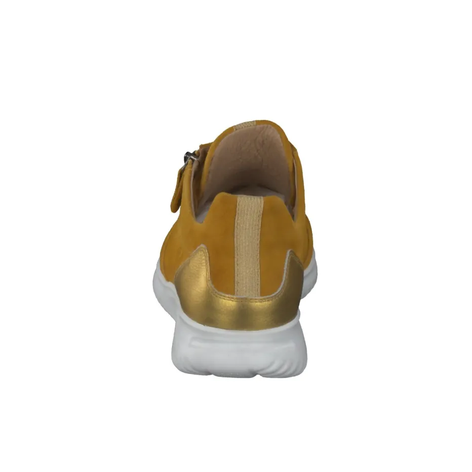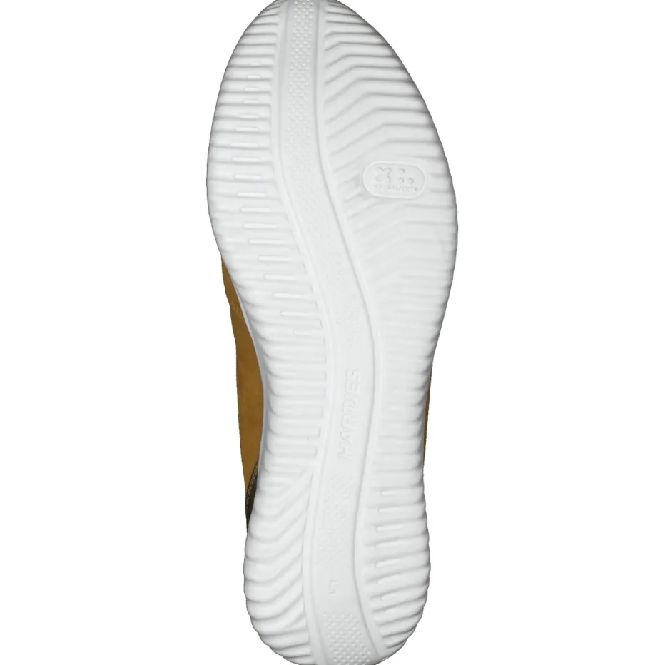 Dieser Komfort-Sneaker von Hartjes bringt herbstlichen Farbtrend und funktionelles Design mühelos in Einklang. Senfgelbes Veloursleder trifft auf durchdachten Komfort.