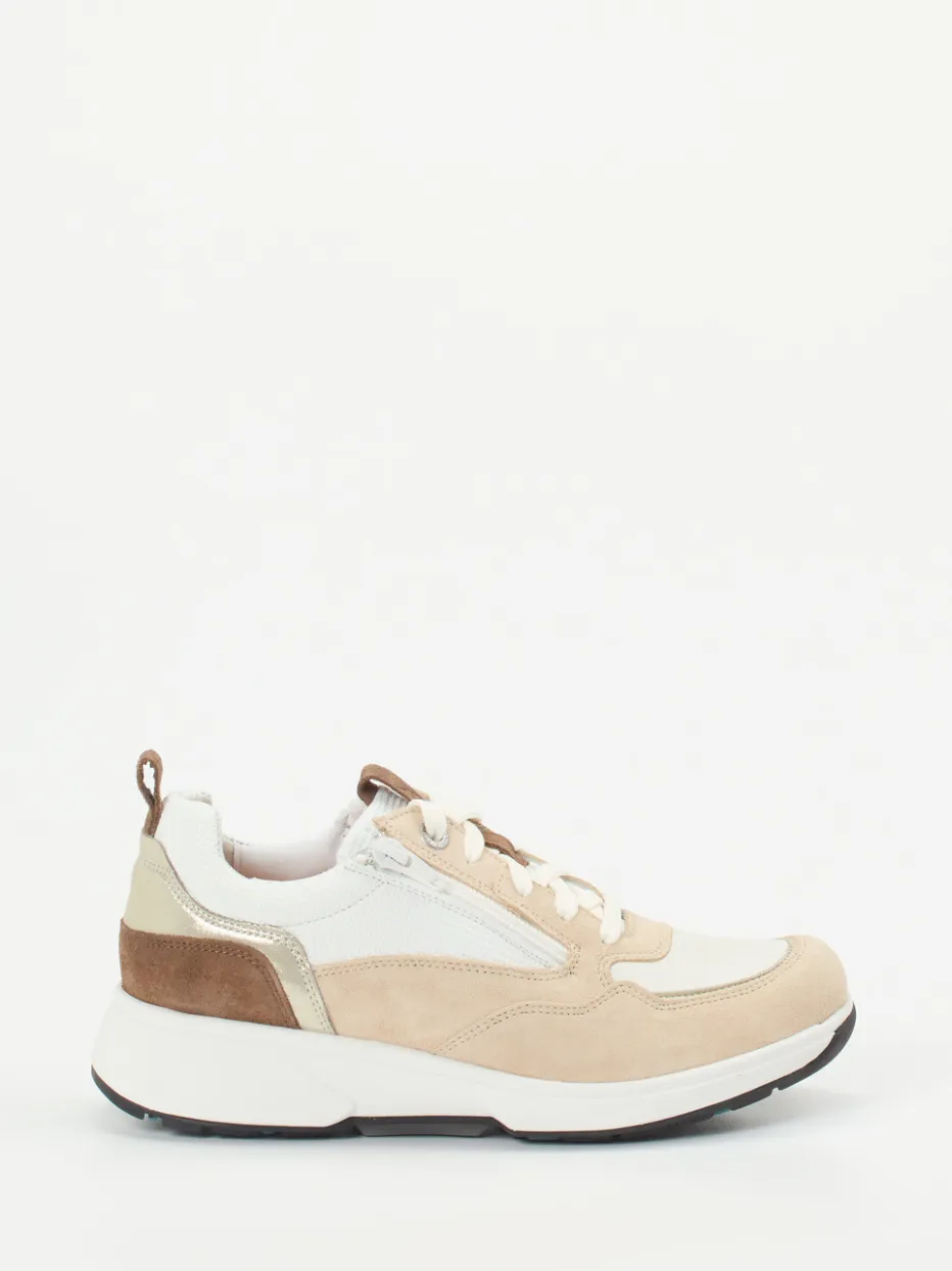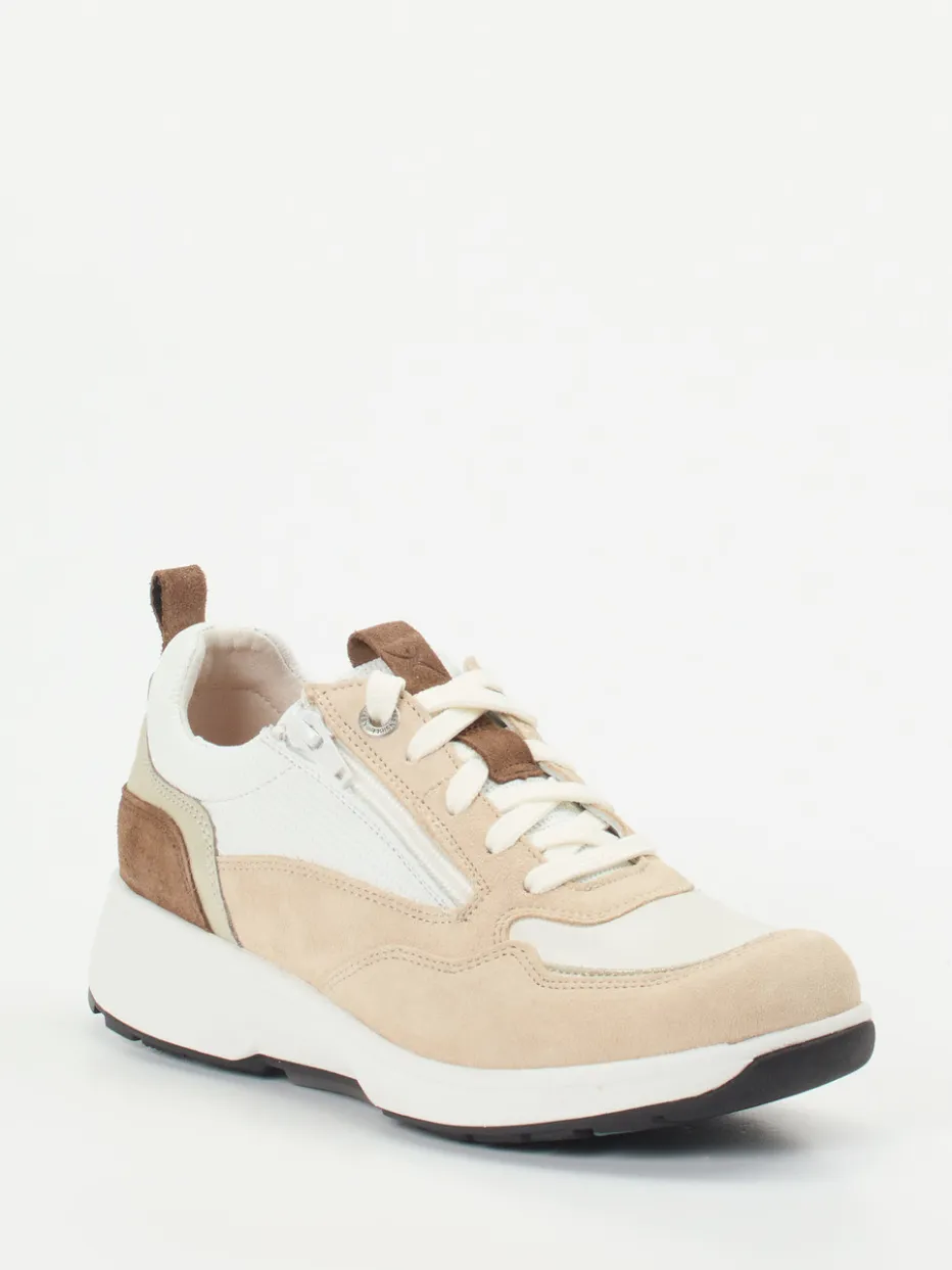 Eleganz im Alltag neu gedacht.Xsensible vereint bei diesem Komfort-Sneaker eine sportlich-klassische Silhouette mit hohem Tragekomfort und einem dezenten Trend-Appeal. Perfekt für Tage voller Bewegung: Das beige Veloursleder ist samtig angeschliffen und wird durch strukturierte Mesh-Partien modern kontrastiert. Weiße und mittelbraune Akzente sowie ein Metallic-Einsatz an der Ferse unterstreichen das minimalistische Design. Ein seitlicher Reißverschluss ermöglicht ein schnelles Anziehen, während die weich gepolsterte Gummisohle eine angenehme Dämpfung bietet. Das Modell eignet sich für Einlagen und interpretiert lautlos den Quiet-Luxury-Trend. Xsensible steht für ausgereifte Passformlösungen mit stilvollem Understatement.