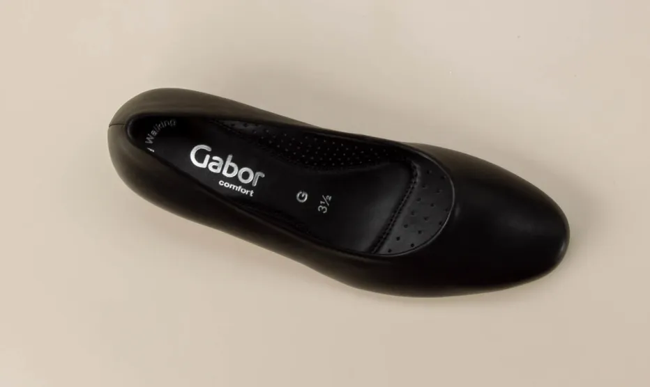 Stilvoll durch den Alltag.Gabor Comfort präsentiert elegante Komfortpumps für Damen mit klarer Formsprache. Für stilsichere Auftritte im Büro oder bei urbanen Erledigungen bietet dieser Pumps aus schwarzem Kalbleder mit sanftem Glanz eine überzeugende Kombination aus Eleganz und Komfort. Die weich gepolsterte Decksohle mit ergonomischer Formung unterstützt ermüdungsfreies Gehen, während der strukturierte Blockabsatz festen Stand verleiht. In klassisch gerundeter Silhouette und matt wirkender Oberfläche trifft dezente Ton-in-Ton-Naht auf eine rutschhemmende Gummisohle. Quiet Luxury und Comfort Core finden hier eine gelungene Verbindung – ideal für klassisch-komfortbewusste Looks. Harmoniert perfekt mit Blazer und Lederhandtasche. Komforttechnologie von Gabor trifft auf zurückhaltenden Stil mit Substanz.