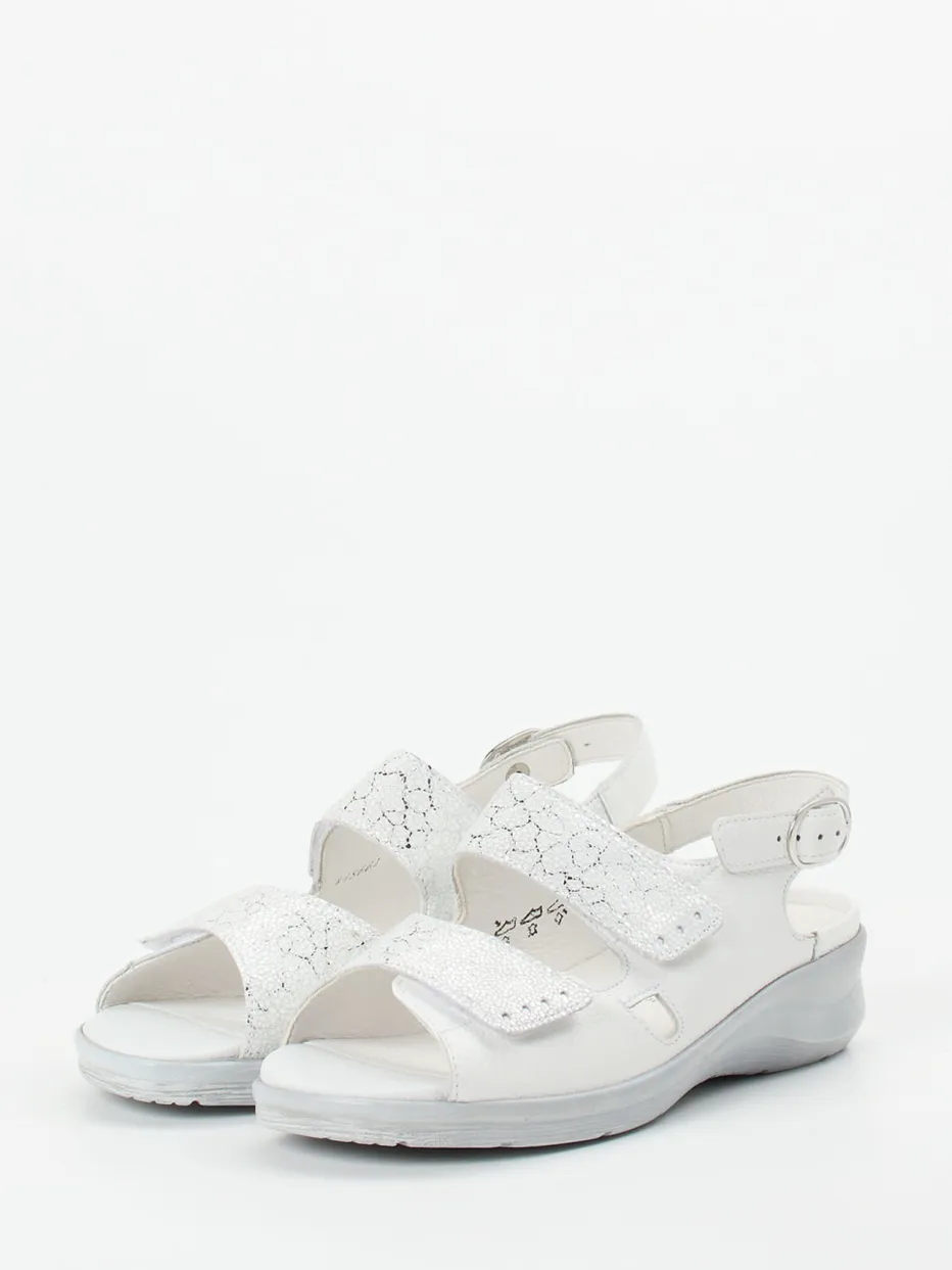 – Komfortsandale aus geprägtem Leder Offwhite*Waldläufer New