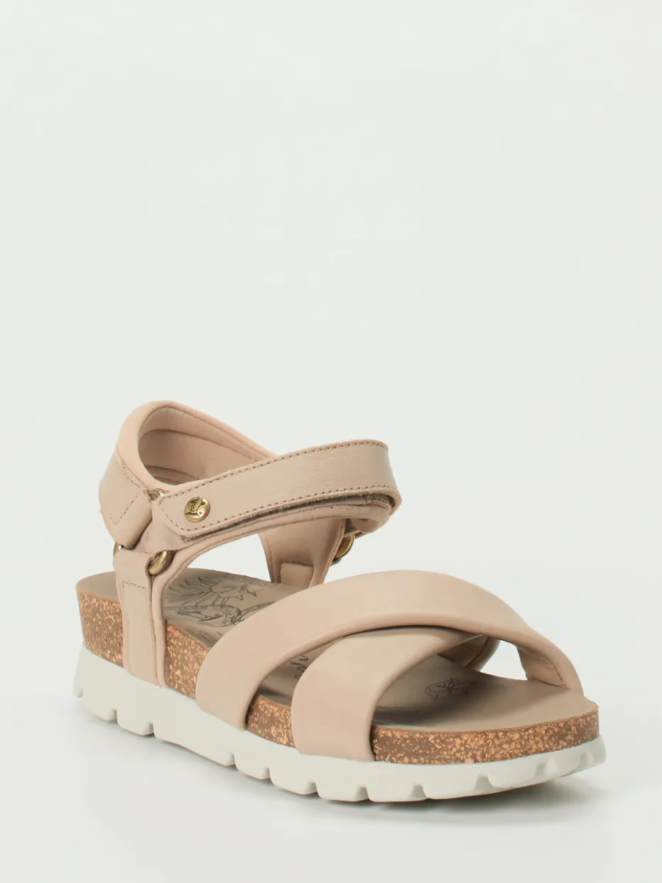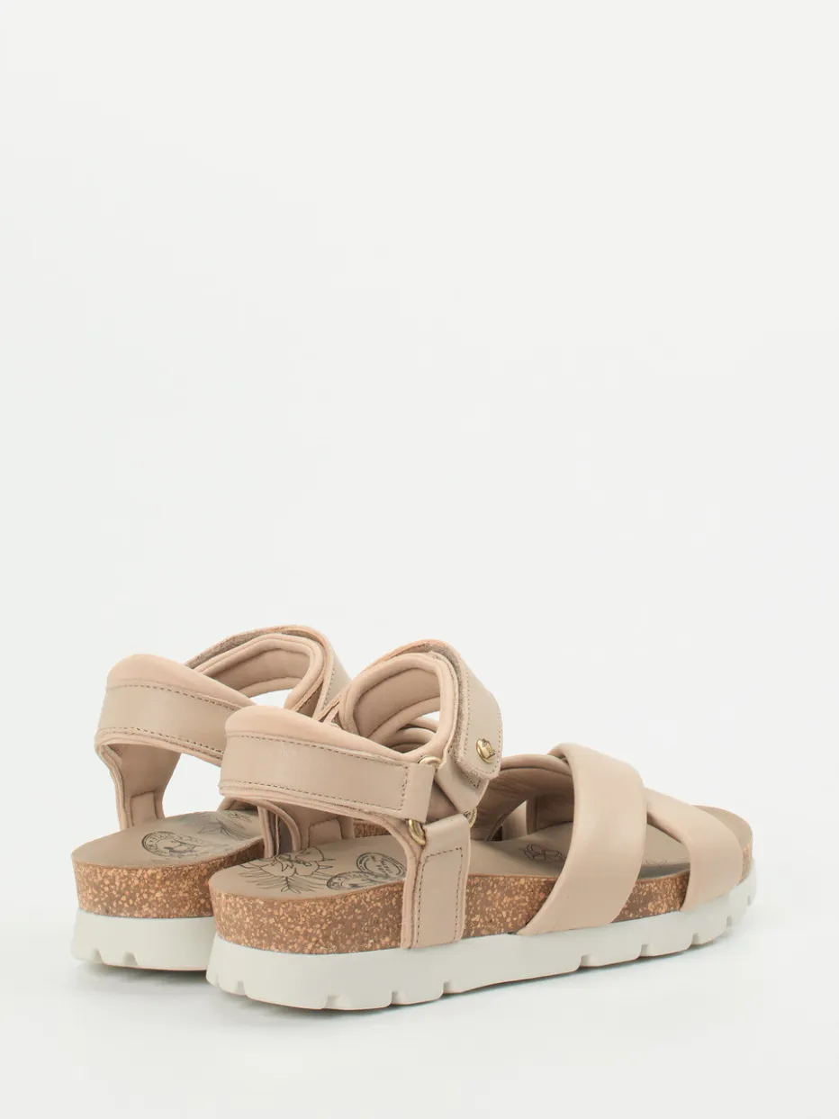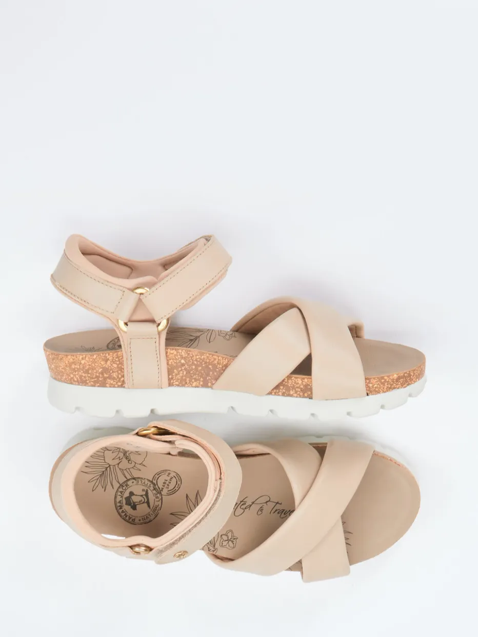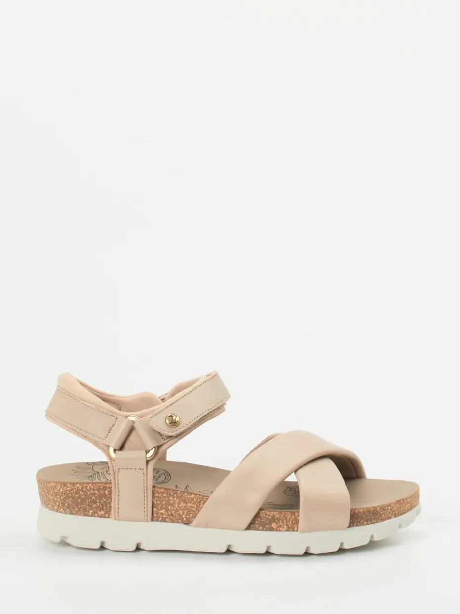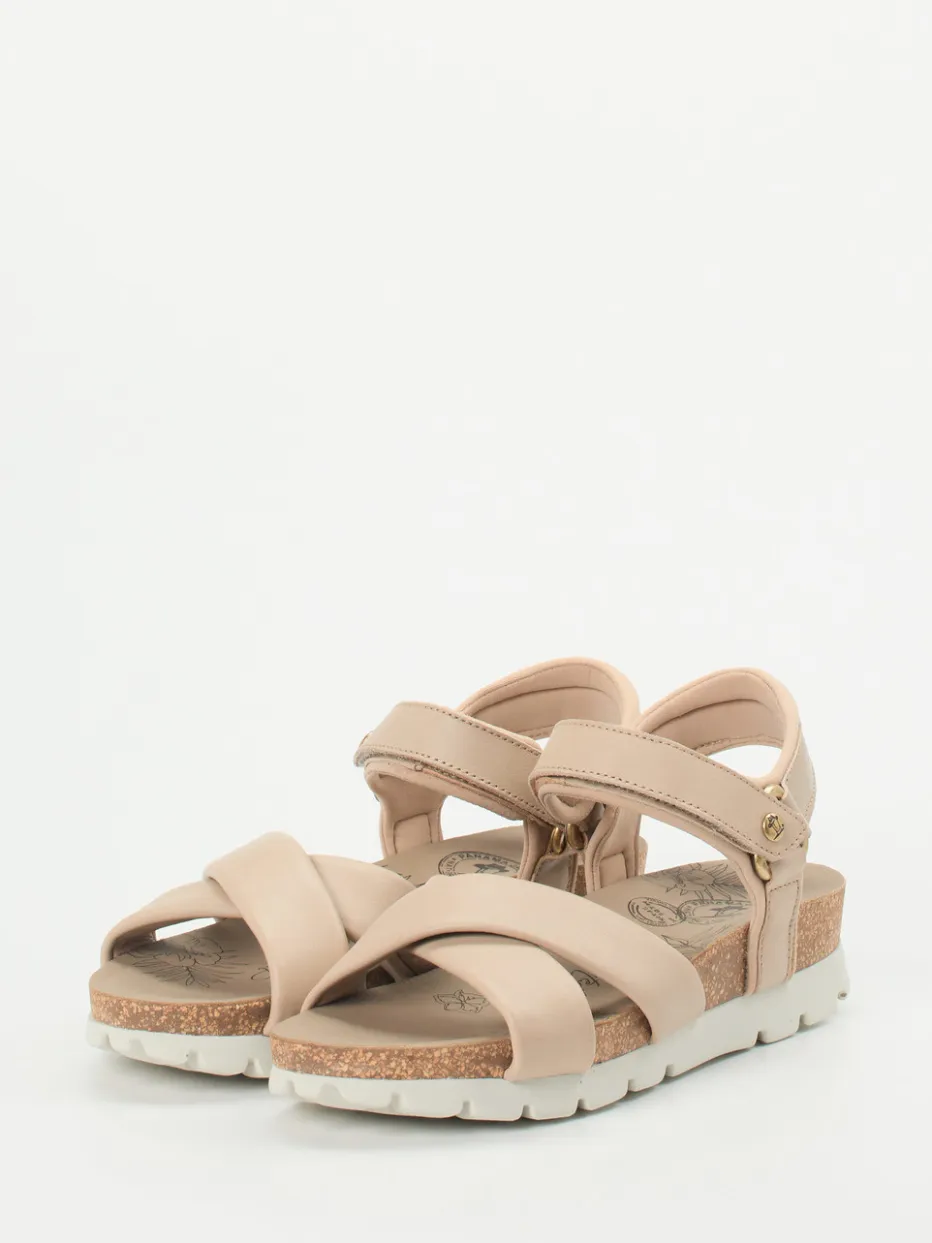 Panama Jack präsentiert mit dieser Komfortsandale eine hochwertige Damenvariante für warme Tage. Für entspannte Ausflüge oder den täglichen Stadtbummel bietet das weiche, mattes Lammleder in sanftem Braun angenehme Flexibilität. Über Kreuz gelegte, breit gepolsterte Riemen sorgen für festen Halt, während der Fersenriemen mit goldfarbenem Klettverschluss das Markenlogo trägt. Die lederbezogene Korksohle mit anatomischer Prägung unterstützt die Ergonomie, die rutschhemmende Gummisohle gibt Trittsicherheit. Goldene Details und Naturtöne greifen moderne Sommertrends wie „Natural Tones SS24“ auf. Lässt sich ideal mit Leinenlook oder Canvas-Accessoires kombinieren. Komfortstark, natürlich und hochwertig – in typisch Panama Jack Manier.