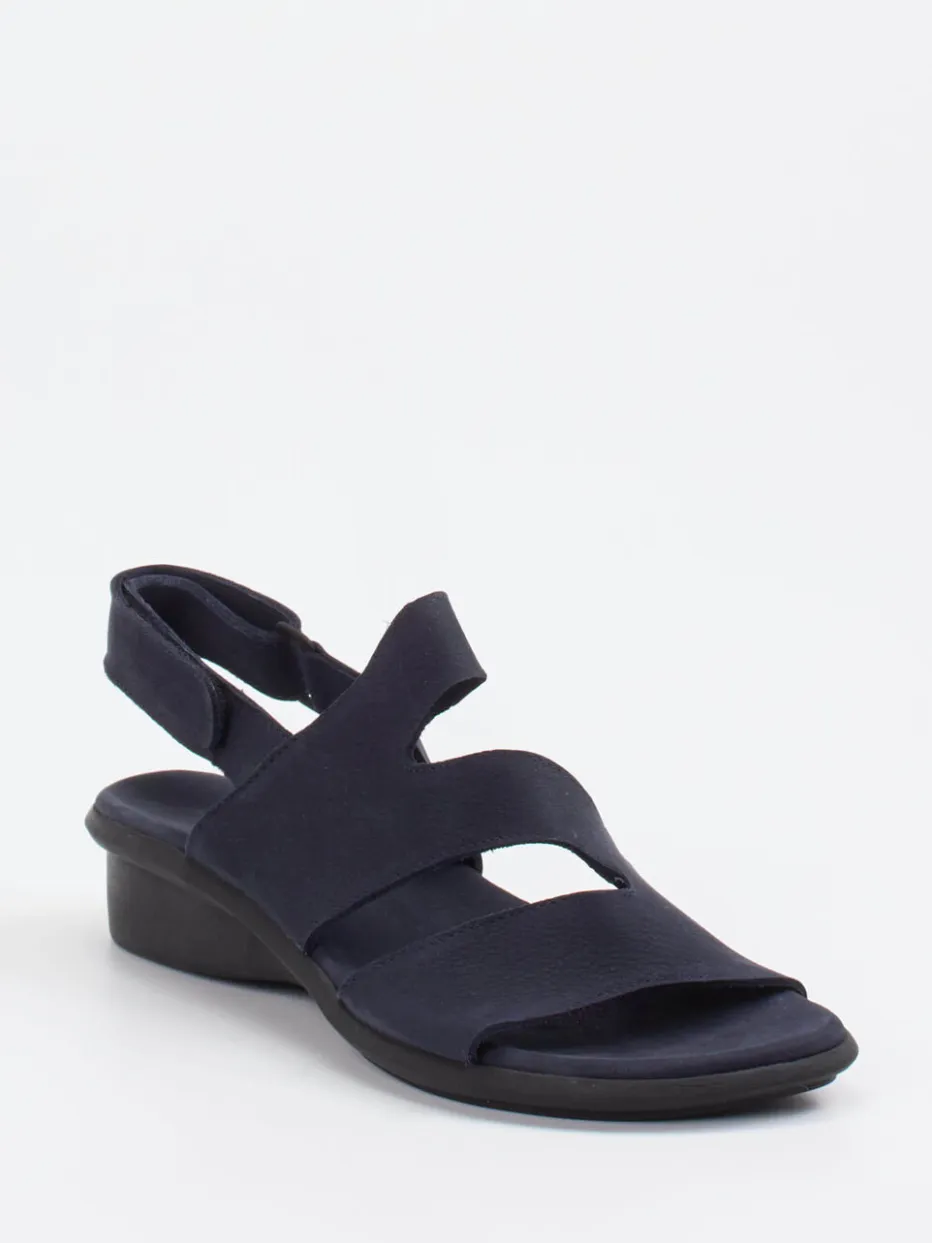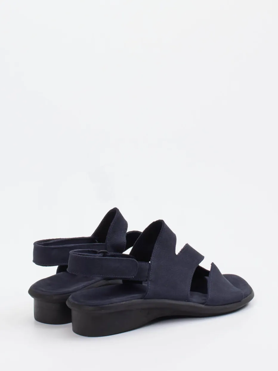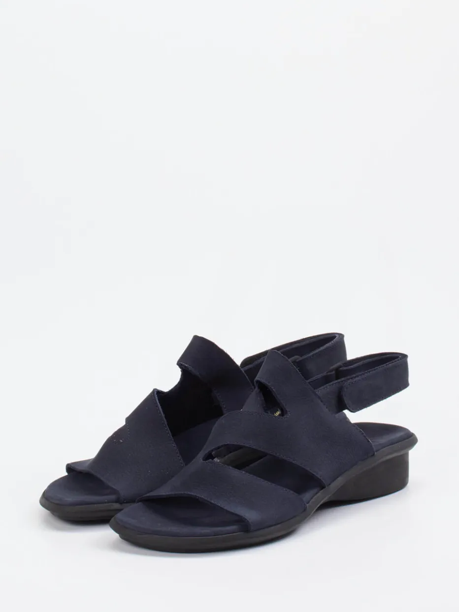 Komfort neu gedacht.Die französische Marke Arche präsentiert mit dieser Sandale eine Damen-Komfortsandale, die Alltag und Stil harmonisch verbindet. Für entspannte Tage im Sommer ist das Modell ideal: Das samtig angeschliffene Nubukleder zeigt sich in einem tiefen Dunkelblau und liegt angenehm auf der Haut. Der offene Schnitt mit breiten, durchdacht gesetzten Riemen belüftet den Fuß – Cut-Outs sorgen für zusätzlichen Tragekomfort. Ein praktischer Klettverschluss erleichtert das Anpassen, die schwarze, leicht keilförmige Naturlatexsohle mit floralem Profil bietet sicheren Halt. Angesiedelt im Trendfeld Soft Utility zeigt sich das Modell urban-lässig. Arche steht hier für hochwertigen Komfort in elegant-puristischer Formensprache.