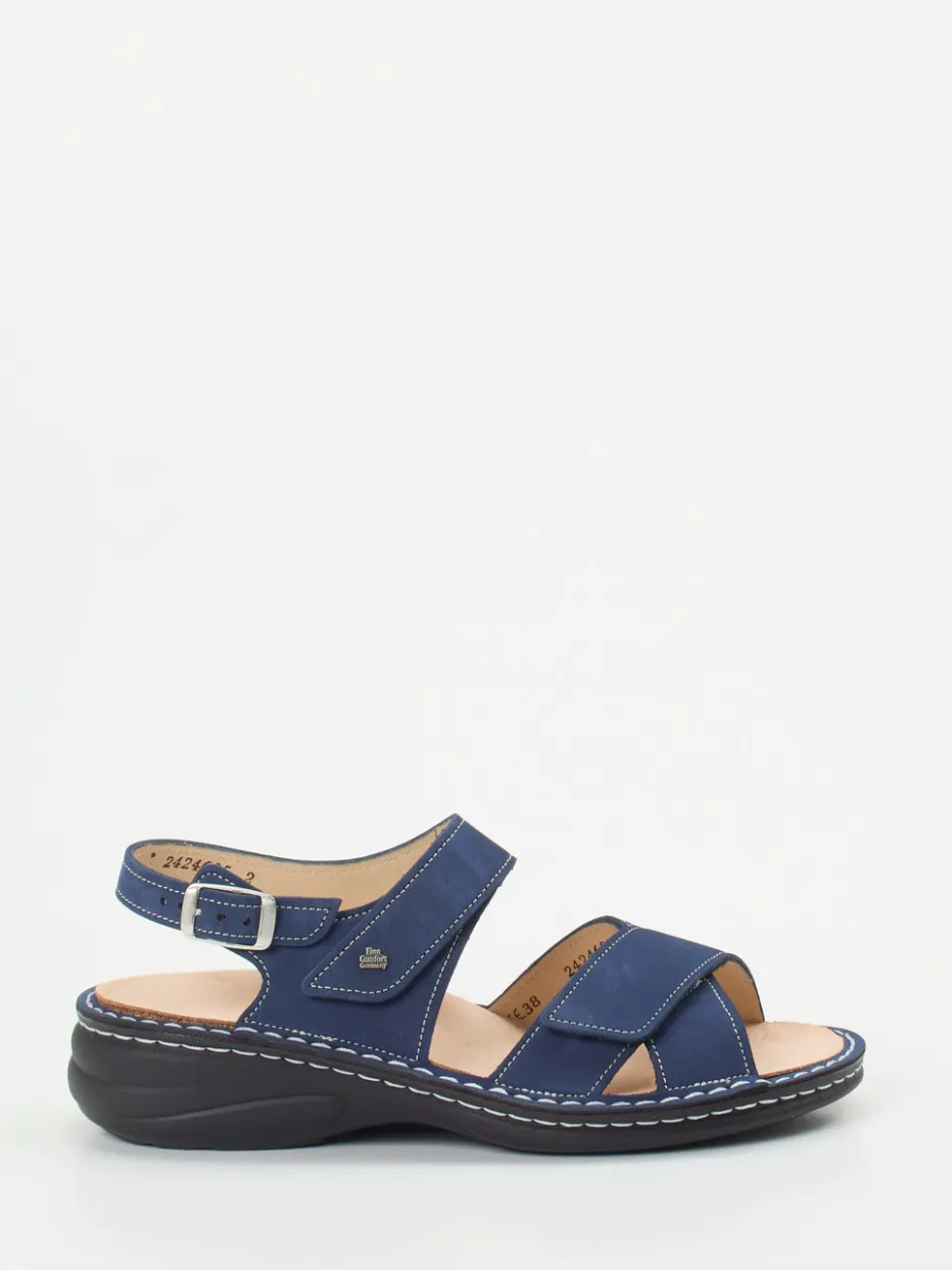 Die Linosa-Sandale von Finn Comfort überzeugt durch ergonomisches Design, verstellbare Riemen und weiches Nubukleder in Marineblau – für entspanntes Gehen im Alltag.