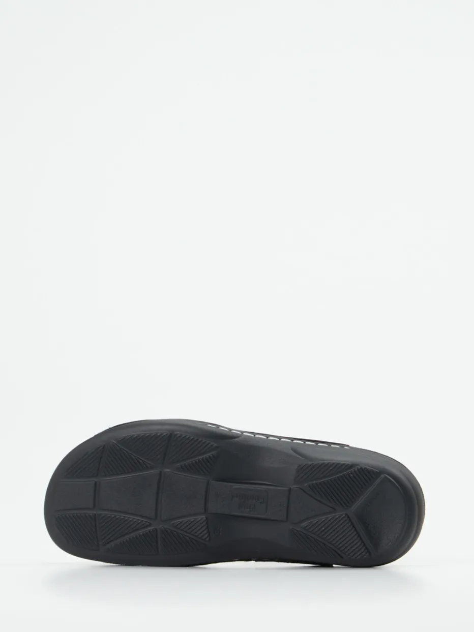 Komfort neu definiert.Finn Comfort präsentiert eine Komfortsandale, die maximalen Alltagskomfort mit klarer Gestaltung verbindet. Ideal für Freizeit und Zuhause passt sich das Modell Linosa dank individuell verstellbarer Klett- und Fersenriemen jeder Fußform an. Das anschmiegsame Nubukleder mit samtiger Oberfläche harmoniert mit weißen Ziernähten und einer silberfarbenen Metallschnalle. Die marineblaue Farbgebung wirkt dezent-modern. Innen bietet das gepolsterte, lederbezogene Korkfußbett ergonomische Unterstützung und Raum für Einlagen. Eine flexible Gummisohle sorgt für Trittsicherheit – auch bei längeren Wegen. Der schlichte Look unterstützt funktionellen Minimalismus. Ein durchdachter Begleiter für Komfortliebhaberinnen – markentypisch in Qualität und Passform.