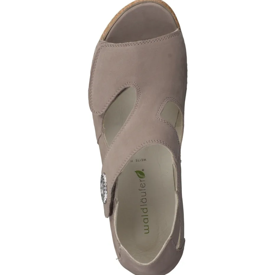 Für entspannte Tage mit Komfortfokus.Die Marke Waldläufer präsentiert mit dieser Komfortsandale ein luftiges Modell für Alltag und Freizeit. Das taupefarbene Nubukleder ist samtig angeschliffen und bietet zusammen mit dem weichen Lederfutter ein besonders angenehmes Tragegefühl. Die Silhouette ist geschlossen gearbeitet, zeigt seitliche Cut-Outs und wird durch einen silberfarbenen Zierknopf und markante Kontrastnähte stilvoll betont. Dank Klettverschluss ist eine schnelle Weiteneinstellung möglich, während die flexible Gummisohle mit Korkrahmung rutschhemmend wirkt. Stilistisch orientiert sich das Modell am „Quiet Comfort“-Trend der Saison und eignet sich ideal für komfortaffine Looks. Waldläufer-typischer Laufkomfort trifft auf zeitlos dezente Optik.