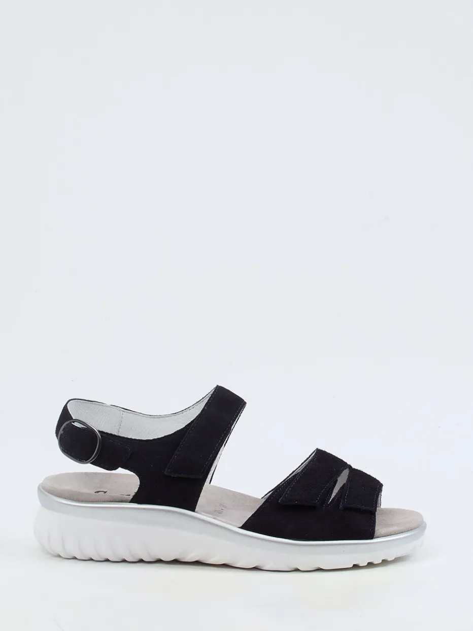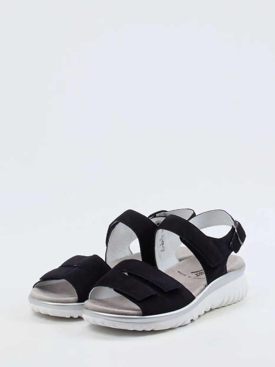 Sommerklar mit Stil und Komfort.Semler präsentiert eine Komfortsandale für Damen, die Alltag und Entspannung vereint. Der weiche Veloursleder-Schuh in edlem Blau überzeugt mit ergonomisch geformter Silhouette und gepolstertem Wechselfußbett. Verstellbare Klettverschlüsse und eine silberfarbene Metallschnalle gewährleisten sicheren Halt, während die keilförmige Gummisohle mit silbernem Rand optische Akzente setzt. Die Kombination aus matter Oberfläche und minimalistischem Design passt ideal zu legeren Looks. Ein Modell für modebewusste Komfortliebhaberinnen – perfekt zu funktionalen Sommerhosen und T-Shirts. Semler steht hier für durchdachte Passform und wohltuende Materialien.