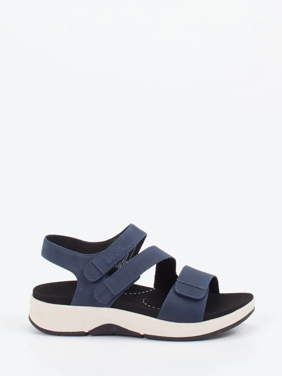 Jede Bewegung spürbar bequemer.Josef Seibel präsentiert eine Damen-Komfortsandale, die Leichtigkeit mit ergonomischem Design verbindet. Für ausgedehnte Spaziergänge oder entspannte Urlaubstage bietet das Modell mit seinem samtig angeschliffenen Nubukleder in Dunkelblau eine optisch zurückhaltende Eleganz. Drei individuell einstellbare Klettverschlüsse und die gepolsterte Innensohle sorgen für passgenauen Halt und Gehkomfort. Die breite Form mit leichter Plateausohle und rutschhemmender EVA-Laufsohle stützt gezielt das Fußgewölbe und ist sogar für lose Einlagen geeignet. Ton-in-Ton-Nähte und dezente Logoprägung unterstreichen den minimalistischen Look. Ein durchdachtes Design für komfortbewusste Alltagsmomente – mit bewährter Josef Seibel Qualität.