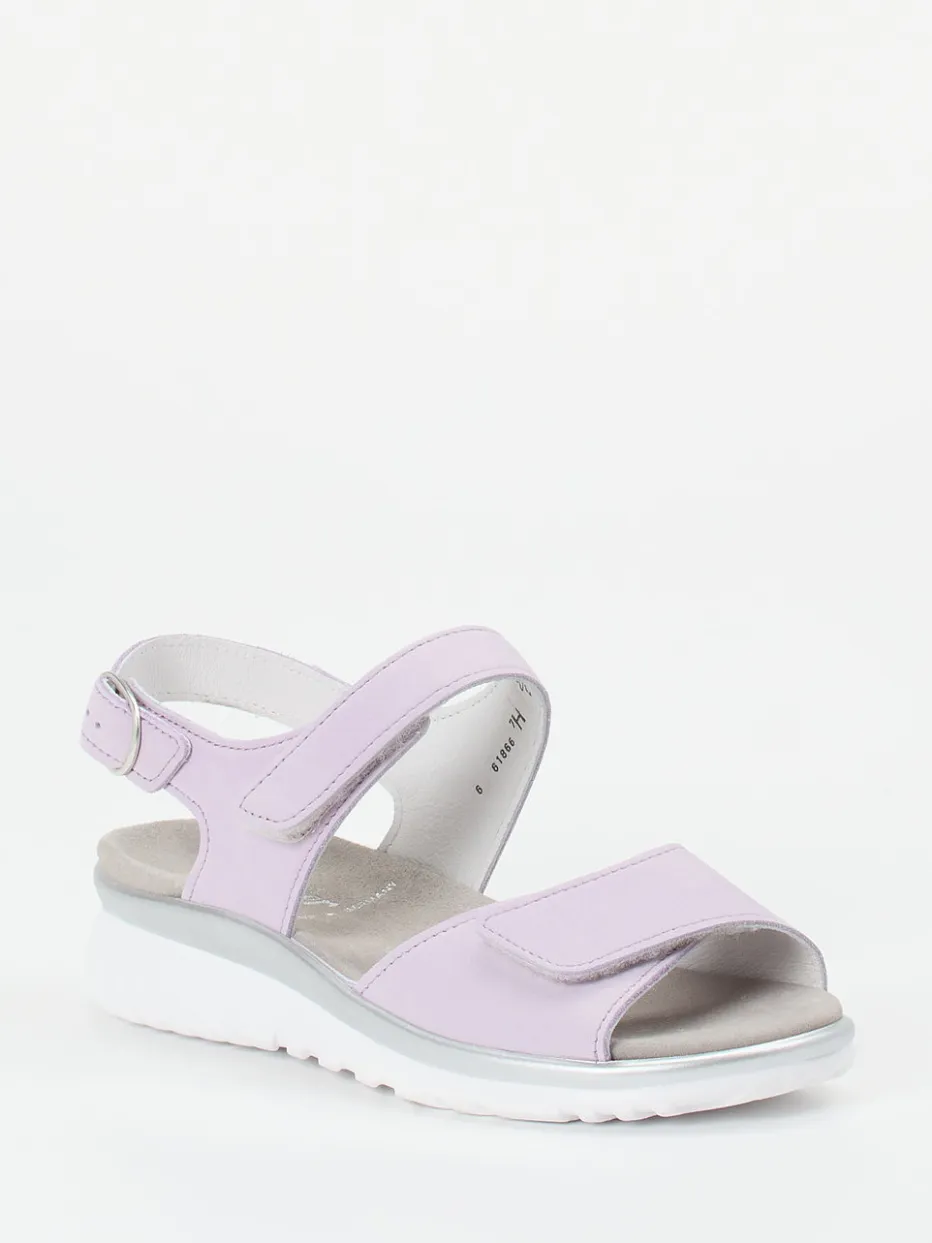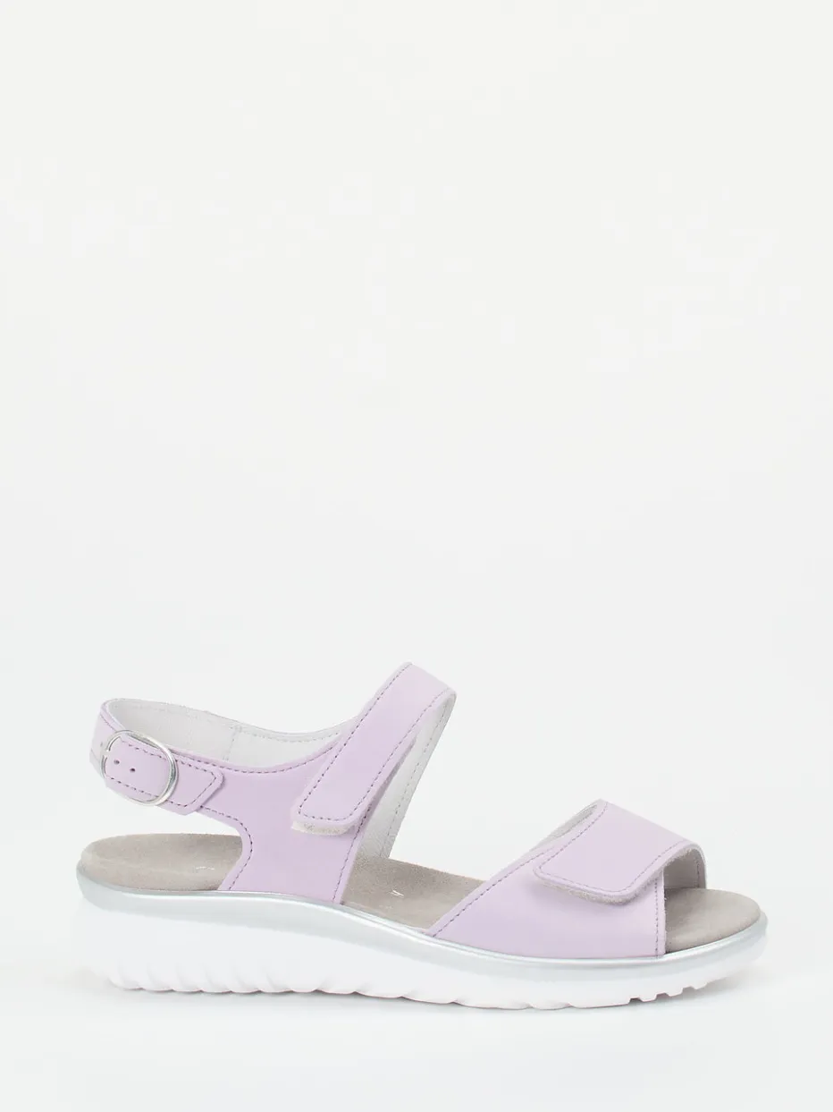 Sommerkomfort in sanften Tönen.Semler präsentiert eine Komfortsandale für Damen aus der bequemen Serie Laura. Ideal für entspannte Spaziergänge und Alltagswege bietet das ergonomische Modell mit Riemchen aus samtig angeschliffenem Nubukleder in zartem Flieder höchsten Tragekomfort. Die offene, ergonomische Silhouette mit verstellbarer Fersenschnalle und Klettverschlüssen erleichtert das An- und Ausziehen. Die leichte Gummisohle mit silbernem Rand sorgt für rutschhemmenden Halt. Im Stil minimalistisch gehalten, überzeugt die Sandale auch durch ihr herausnehmbares, weiches Fußbett. Gut kombinierbar mit Leinenstoffen und pastellfarbenen Accessoires. Ein Modell mit funktionalem Design und femininer Zurückhaltung – typisch Semler.