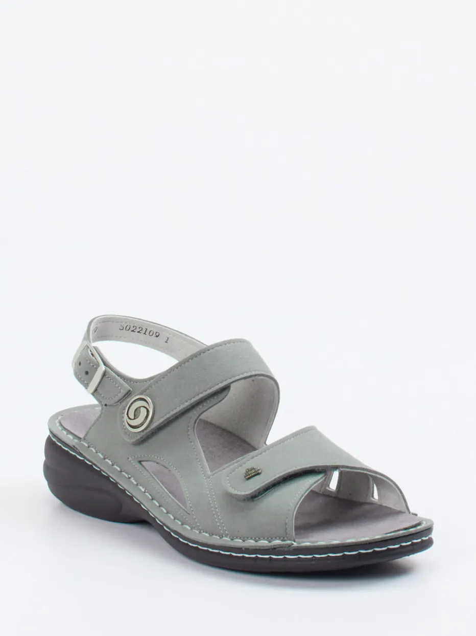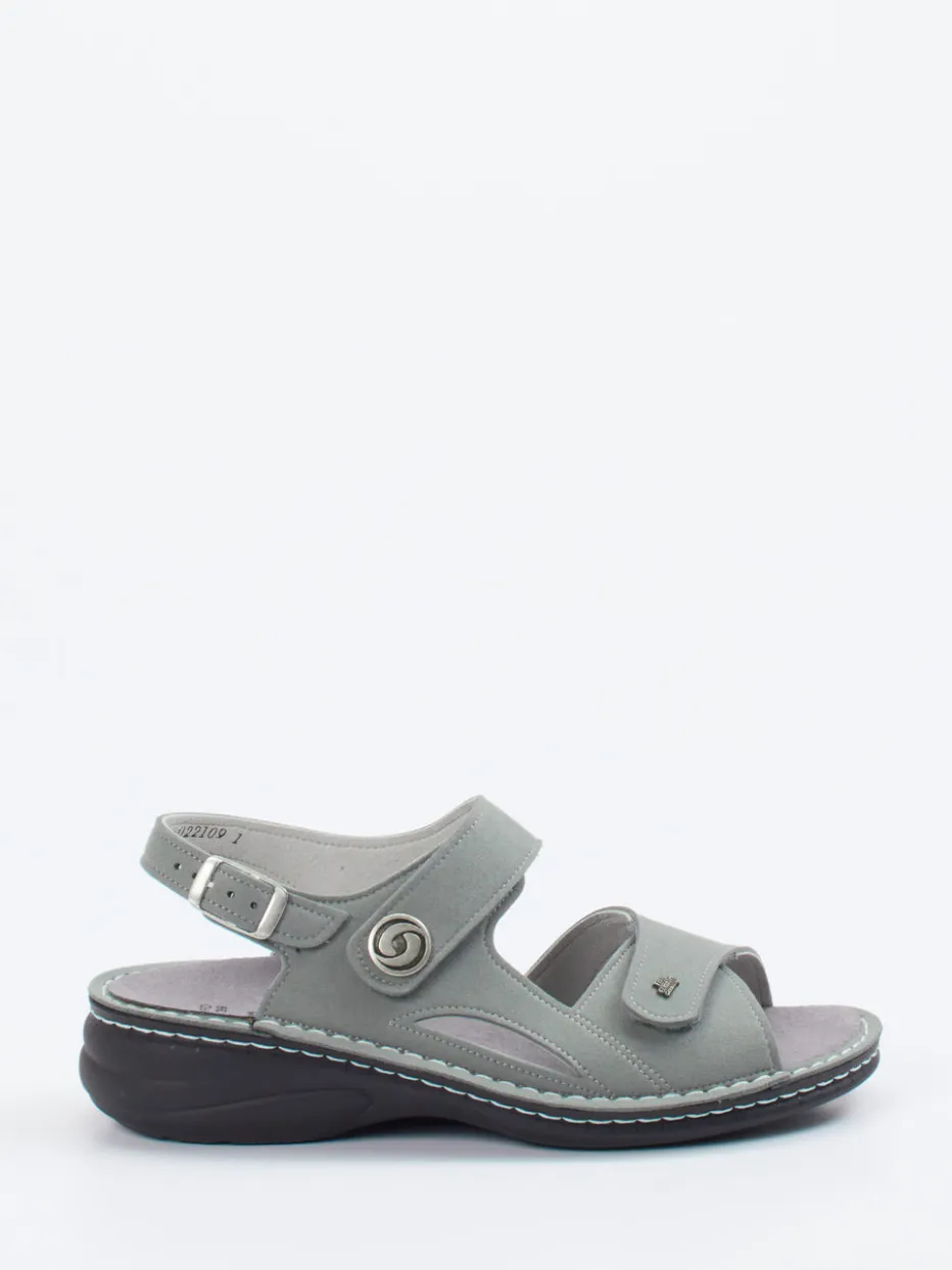 Vegane Leichtigkeit für entspannte Sommertage.Finn Comfort präsentiert mit dieser Komfortsandale ein Modell für die warme Jahreszeit. Ideal für alltagstauglichen Komfort bei Stadtbummel oder Zuhause: Das grüne Mikrofaserleder wirkt durch seine matte Oberfläche modern und zurückhaltend. Silberfarbene Applikation und Ziernähte setzen dezente Akzente. Klettverschlüsse und ein verstellbarer Fersenriemen garantieren optimalen Sitz, die ergonomische PU-Sohle mit Schockabsorber sorgt für Trittsicherheit und ganztägiges Wohlbefinden. Trendstark integriert sich das Modell in die Quiet-Comfort-Ästhetik der Saison und punktet bei vegan orientierten Trägerinnen. Komfort und Nachhaltigkeit – typisch Finn Comfort.