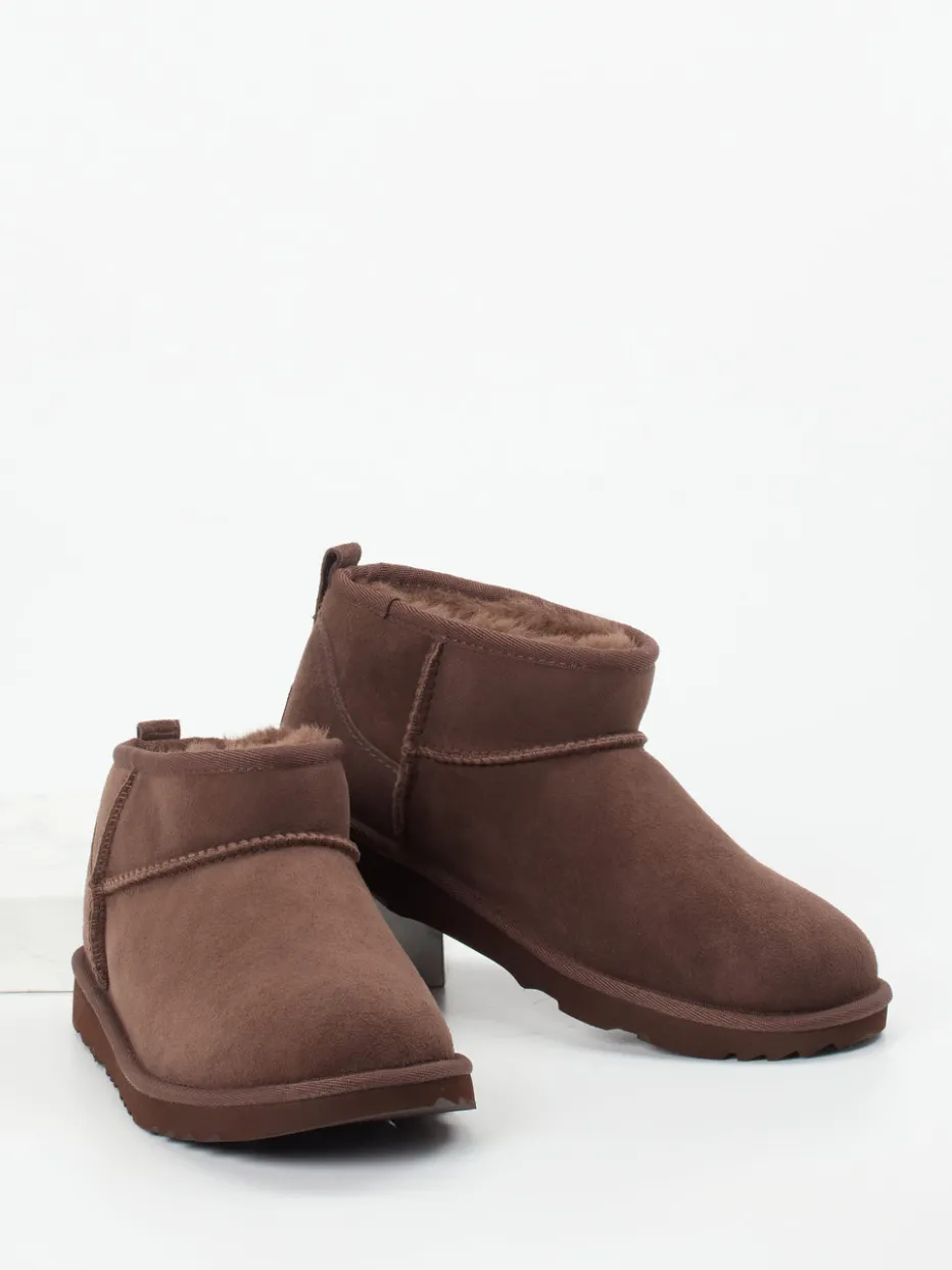 Mit echtem Lammfell gefüttert und in samtigem Veloursleder gehalten, verbinden diese UGG-Stiefeletten stilvolle Gemütlichkeit mit robustem Alltagstauglichkeit.