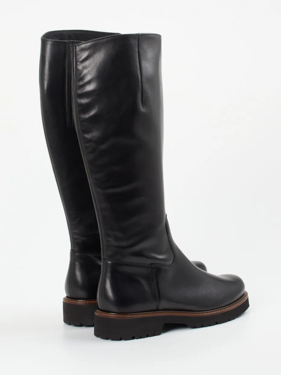 Winterklassiker in minimalistischem Design.Semler präsentiert einen komfortablen Langschaftstiefel für Damen aus geschmeidigem Kalbleder. Ideal für den urbanen Alltag bei Herbst- und Winterwetter: Das schwarze, glänzende Kalbleder mit kontrastierender Rahmennaht sorgt für einen reduzierten Look mit Eleganz. Der innenliegende Reißverschluss erleichtert das Anziehen, während die stark profilierte Gummisohle Trittsicherheit garantiert. Die gerade Schaftform mit Weite H sowie das weiche Textilfutter bieten hohen Komfort. Die klare Linienführung und dezente Details fügen sich geschmackvoll in den Quiet-Luxury-Trend ein. Kombiniert mit Wollmantel und Lederhandtasche entsteht ein stimmiger Auftritt. Hochwertige Verarbeitung und funktionale Ästhetik für stilbewusste Alltagssituationen.