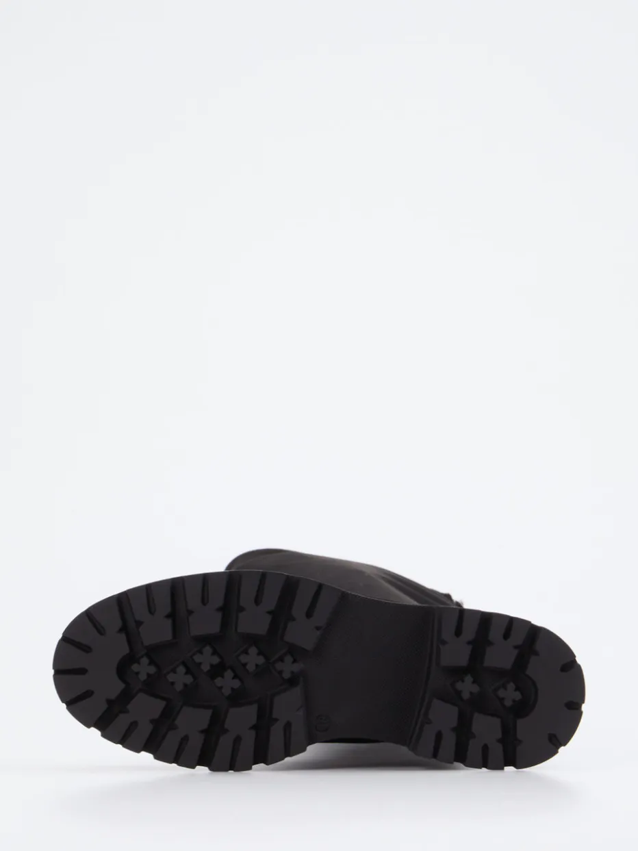 Der schwarze Langschaftstiefel von Andrea Puccini kombiniert mattes Leder in Veloursoptik mit moderner Profilsohle und Stretchkomfort – ideal für stilbewusste Herbst-Looks.