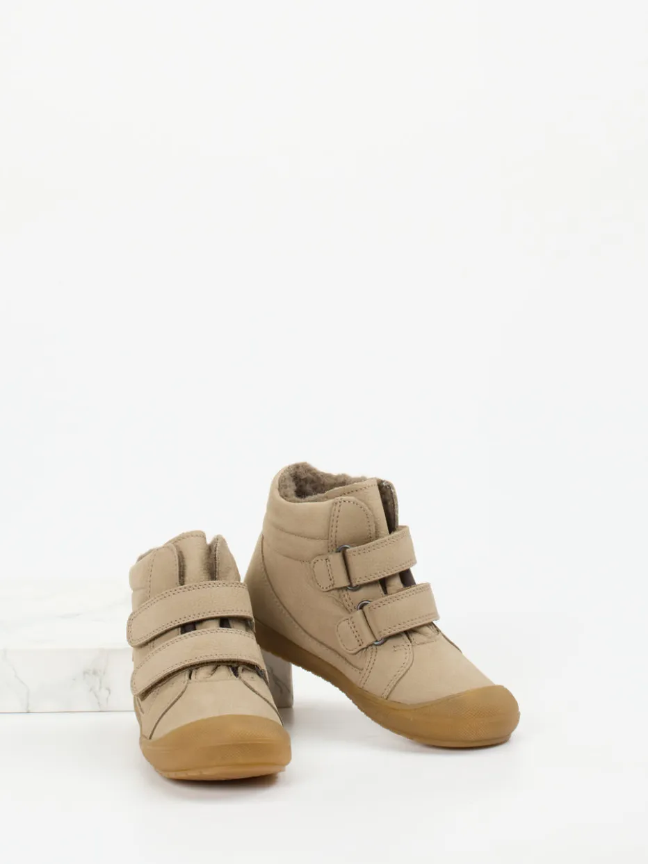 Warmes Design für kleine Schritte.Froddo präsentiert diesen knöchelhohen Lauflern-Klettboot für Kinder. Ideal für herbstliche Alltagsabenteuer: Das außen aus genarbtem Nubukleder gearbeitete Modell ist innen vollständig mit weicher Wolle gefüttert. Die Ton-in-Ton-Nähte, ein seitliches Logo-Patch sowie natürliche Brauntöne unterstreichen den skandinavisch-minimalistischen Look. Zwei breite Klettverschlüsse sorgen für optimalen Halt und kinderleichtes Handling. Die Gummisohle mit griffigem Profil ist leicht hochgezogen und schützt kleine Füße zuverlässig. Passt zu Strick, Teddy-Material und Naturtönen. Froddo vereint Funktionalität und zeitgemäßes Design für kindgerechten Komfort.