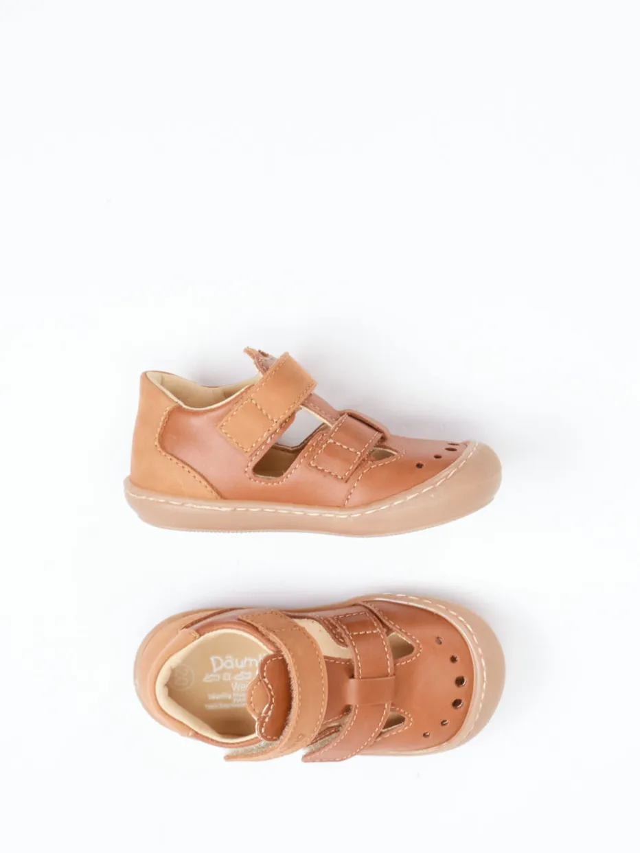 Däumling präsentiert eine hochwertige Lauflernsandale aus weichem Kalbleder für kleine Abenteurer.