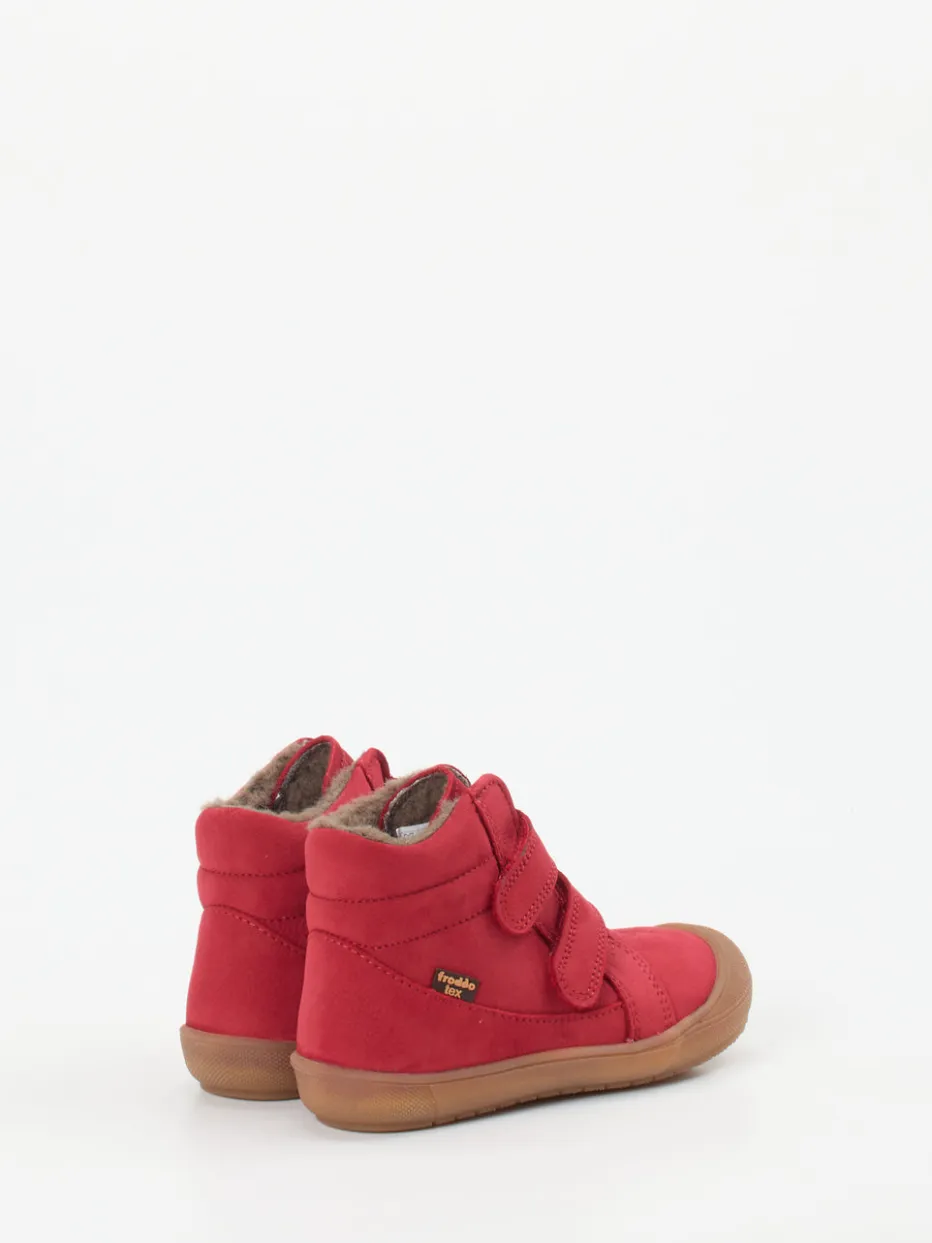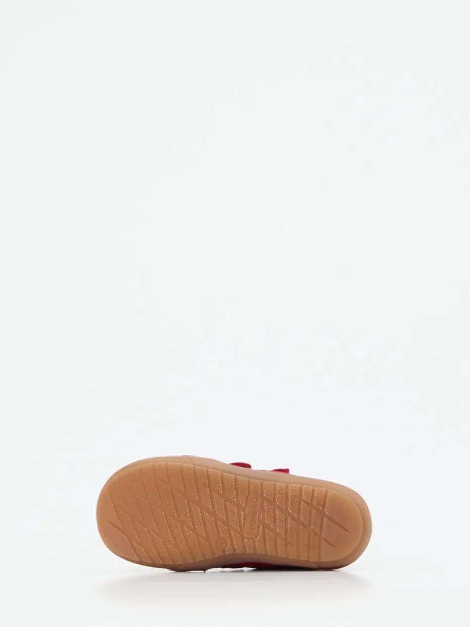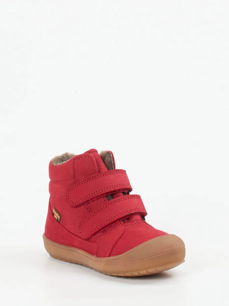 Hochwertiges Nubukleder, samtig angeschliffen und in leuchtendem Rot, verleiht dem Schuh eine besonders kindgerechte Optik. Das warme Wollfutter sorgt für angenehmes Klima, während die kontrastfarbene Gummisohle mit gutem Grip beim Laufenlernen unterstützt. Klettverschlüsse vereinfachen das Anziehen – ideal im turbulenten Familienalltag. Form und Finish greifen skandinavische Outdoorästhetik auf und passen hervorragend zur aktuellen Color-Pop Kidswear.