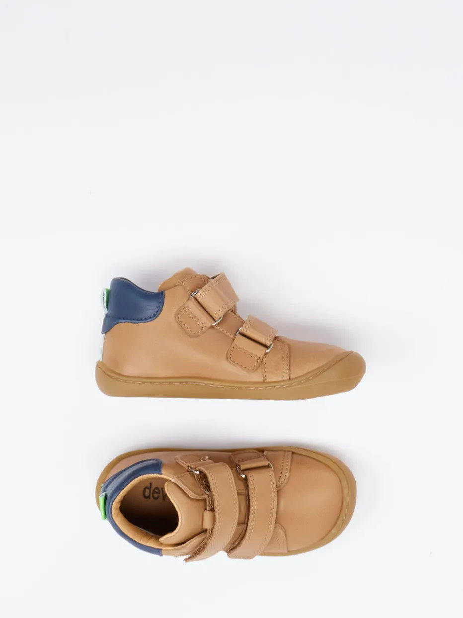 Für erste Schritte mit Stil und Sicherheit.Die Marke develab präsentiert mit diesen Lauflernschuhen ein bequemes Kindermodell aus strapazierfähigem Leder. Ideal für Krabbelgruppe oder Kita: Das hellbraune Glattleder mit matter Oberfläche sorgt für ein gepflegtes Erscheinungsbild, während doppelte Klettverschlüsse sicheren Halt geben. Auffällige Kontrastdetails in Dunkelblau und Neon-Grün sowie eine dekorative Zickzack-Ziernaht setzen frische Akzente. Die runde, knöchelhohe Silhouette und die flexible Profilsohle bieten Komfort und Trittsicherheit auf verschiedenen Untergründen. Inspiriert vom Skandi-Minimalismus ist das Modell ein urbanes Statement für kindgerechte Bewegungsfreiheit. Perfekt für aktive Tage mit develab-typischer Funktionalität und Designfreude.