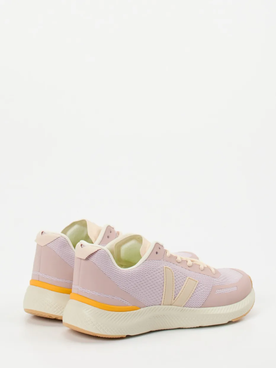 Pastelltrend für aktive Tage.Veja bringt mit diesem Damen-Laufsneaker einen vegan verarbeiteten Klassiker modern interpretiert zurück. Ob beim Stadtspaziergang oder im Fitnessstudio – das atmungsaktive Mesh-Obermaterial in zartem Rosé mit pfirsich-beigen und sonnengelben Akzenten sorgt für frischen Stil und funktionale Leichtigkeit. Die matte Textur, ein gepolsterter Einstieg sowie die verstärkte Ferse bieten ein angenehmes Tragegefühl. Dank Schnürung individuell anpassbar, unterstützt durch eine flexible Gummisohle mit griffigem Profil. Im angesagten Pastell-Look reiht sich das Modell perfekt in die Athleisure-Trends ein. Veja überzeugt mit nachhaltigem Design und vielseitiger Alltagstauglichkeit.