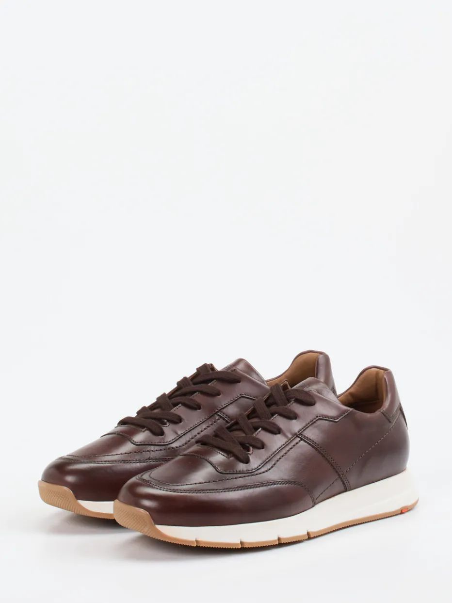 Stilvoller Minimalismus in Dunkelbraun.Der Herren-Sneaker von Lloyd überzeugt als zeitloses Basic mit Funktion und Eleganz. Für Tage, an denen Komfort und ein gepflegter Look gefragt sind, bietet dieser dunkle Sneaker aus hochwertigem, glänzendem Kalbleder zuverlässige Alltagstauglichkeit. Die klassisch-schmal gehaltene Form wird von tonalen Nähten und einer zweifarbigen Gummisohle mit rotem Akzent ästhetisch ergänzt. Die Schnürung und das gepolsterte Innenfutter mit Lederanteil garantieren angenehmes Tragen, ein herausnehmbares Fußbett eignet sich für individuelle Einlagen. Der Look orientiert sich an ruhigem Luxus und Retro-Sneakern der Saison. Ein urbaner Allrounder mit markentypischer Leichtigkeit und Stiltreue.