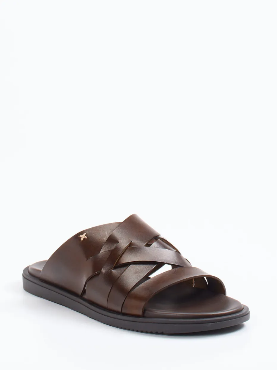 Diese Pantolette aus edlem Kalbleder vereint mediterrane Raffinesse mit minimalistischer Formensprache. Die gekreuzten Riemen und dezente Details unterstreichen die stilvolle Handwerksqualität.