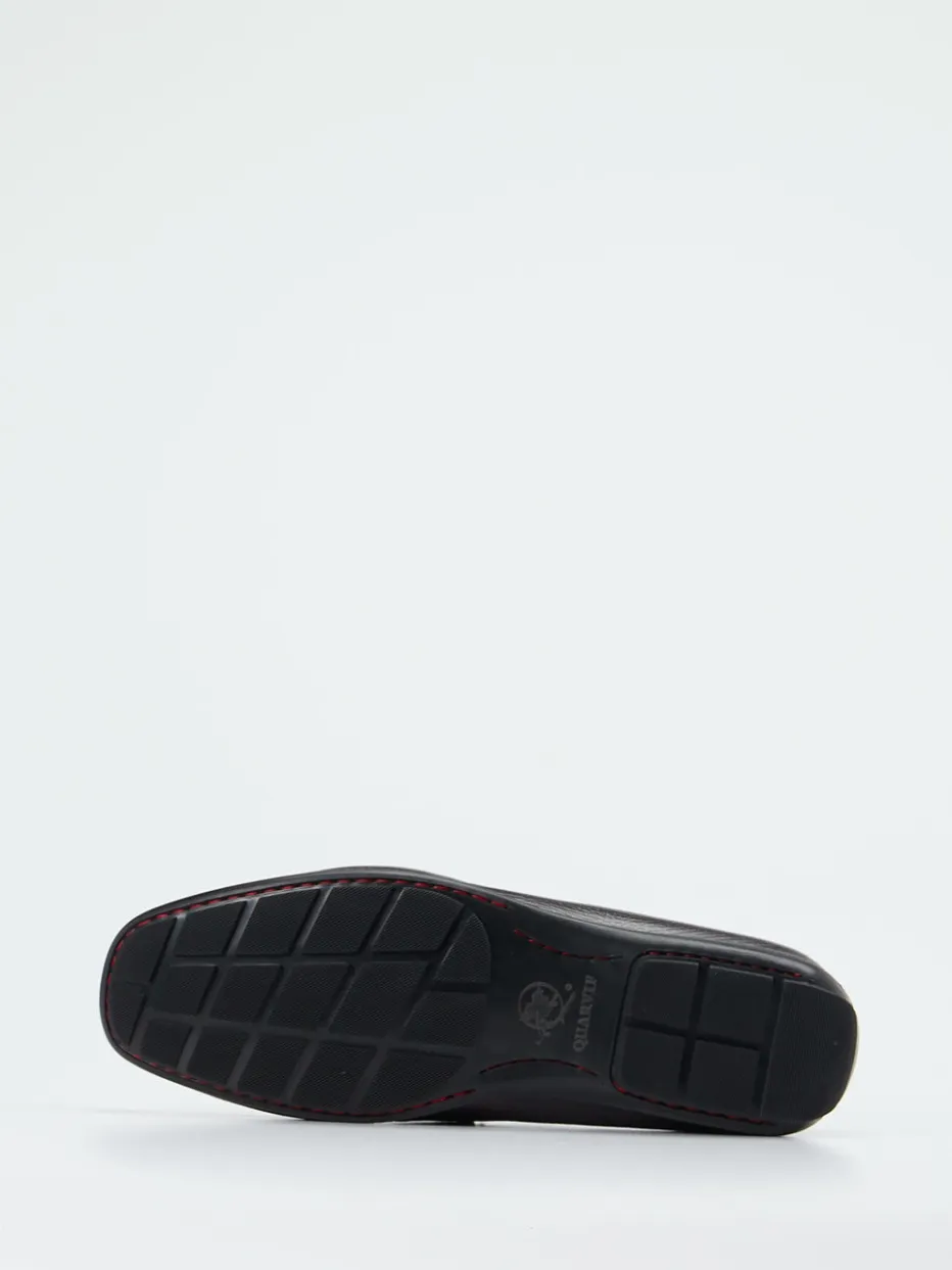 Leichtigkeit trifft Lederhandwerk.Quarvif interpretiert den Herren-Loafer klassisch und modern zugleich. Ob Bürotag oder Stadtbummel – dieser sommerliche Halbschuh überzeugt durch fein genarbtes Elchleder in einem dunklen Graphitschwarz, veredelt durch präzise Durchbruchmuster auf dem Vorderblatt. Die perforierte Oberfläche unterstützt ein angenehmes Fußklima, während das gepolsterte, herausnehmbare Lederfußbett und die profilierte Gummisohle hohen Komfort garantieren. Ton-in-Ton-Nähte, eine lederne Bride mit Logoprägung und die flache Silhouette runden das minimalistisch-elegante Design ab. Perfekt zu Chinos und Leinenhemden kombinierbar. Komfortstarkes Design mit markentypischer Handwerksnote.