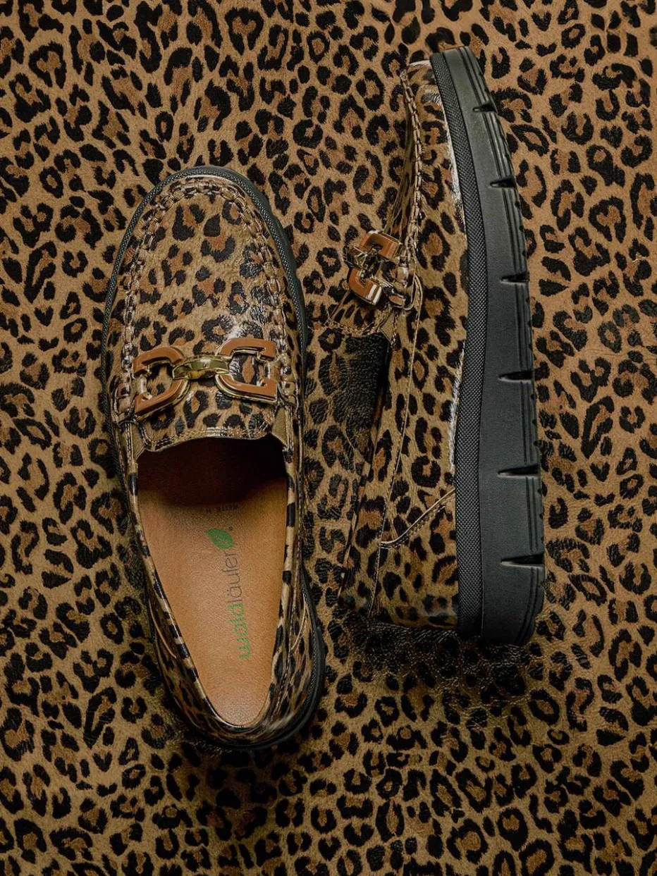 Der Waldläufer-Loafer überzeugt mit glänzend geprägtem Leder in Leoprint-Optik und modischer Chunky-Sohle – perfekt für stilbewusste Auftritte im Alltag oder am Abend.