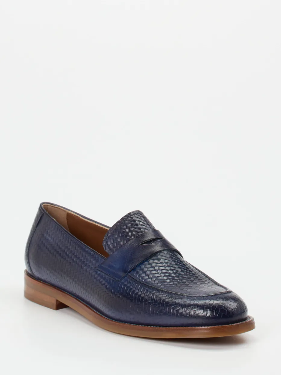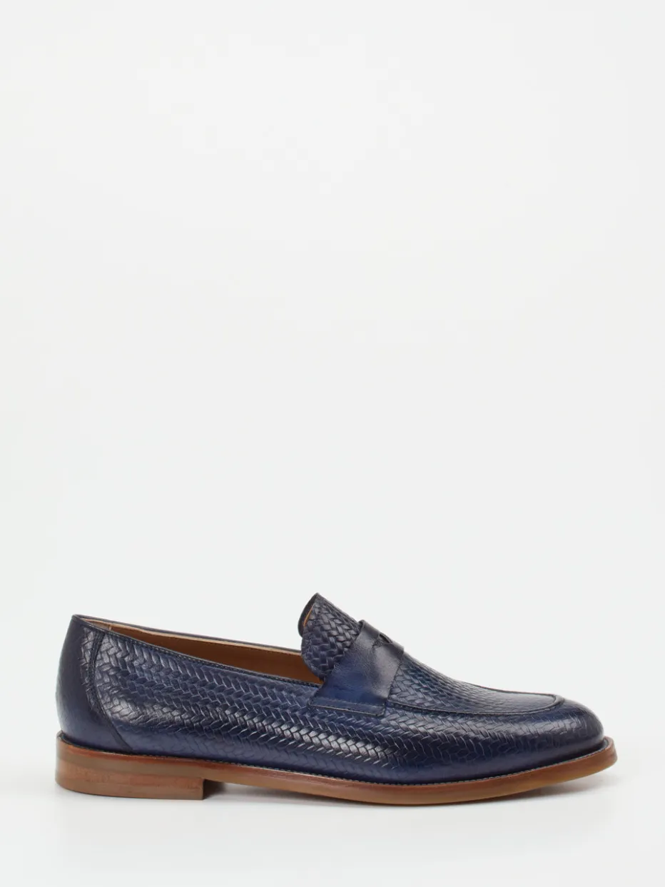 Dieser elegant geprägte Herren-Loafer von Konstantin Starke vereint klassische Linienführung mit texturiertem Leder in edlem Dunkelblau – stilistisch ideal für Office und Freizeit.