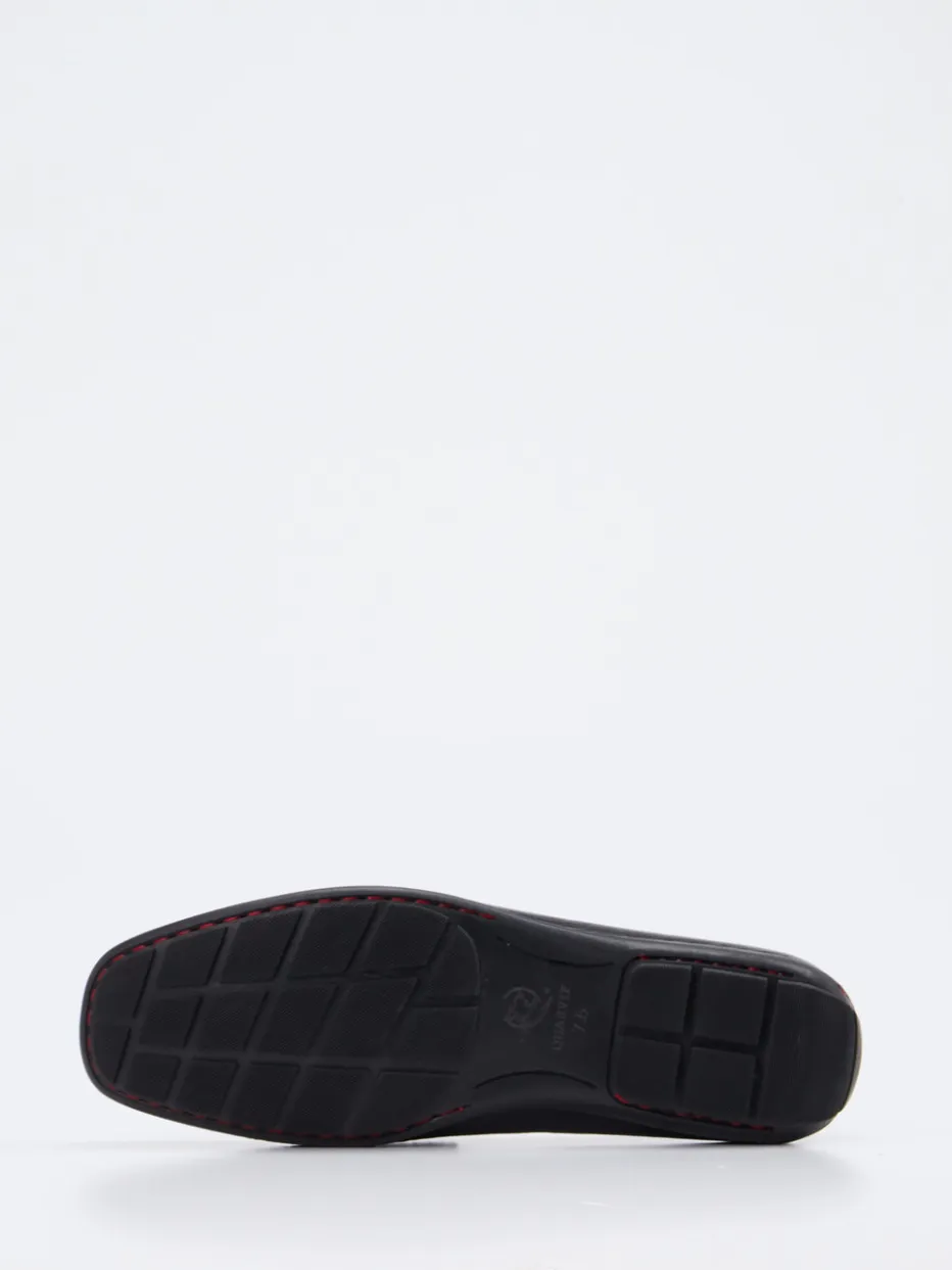 Stilvolle Klasse für Alltag und Business.Der klassische Herren-Loafer von Quarvif verbindet formale Eleganz mit dezenter Raffinesse. Ob im Büro oder beim Stadtbummel – das fein genarbte, sattschwarze Hirschleder mit Mokassinnaht und geschwungenem Pennyschlitz wirkt hochwertig und maskulin. Eine luftige Perforation im Blatt und das weich gepolsterte Lederfußbett sorgen für angenehmen Tragekomfort. Die profilierte Gummisohle mit roter Kontrastnaht greift den Autofahrerstil auf und sorgt für sicheren Tritt. Perfekt für klassische Outfits mit modischem Feinschliff. Ein Schuh mit klaren Konturen und kompromissloser Alltagstauglichkeit.