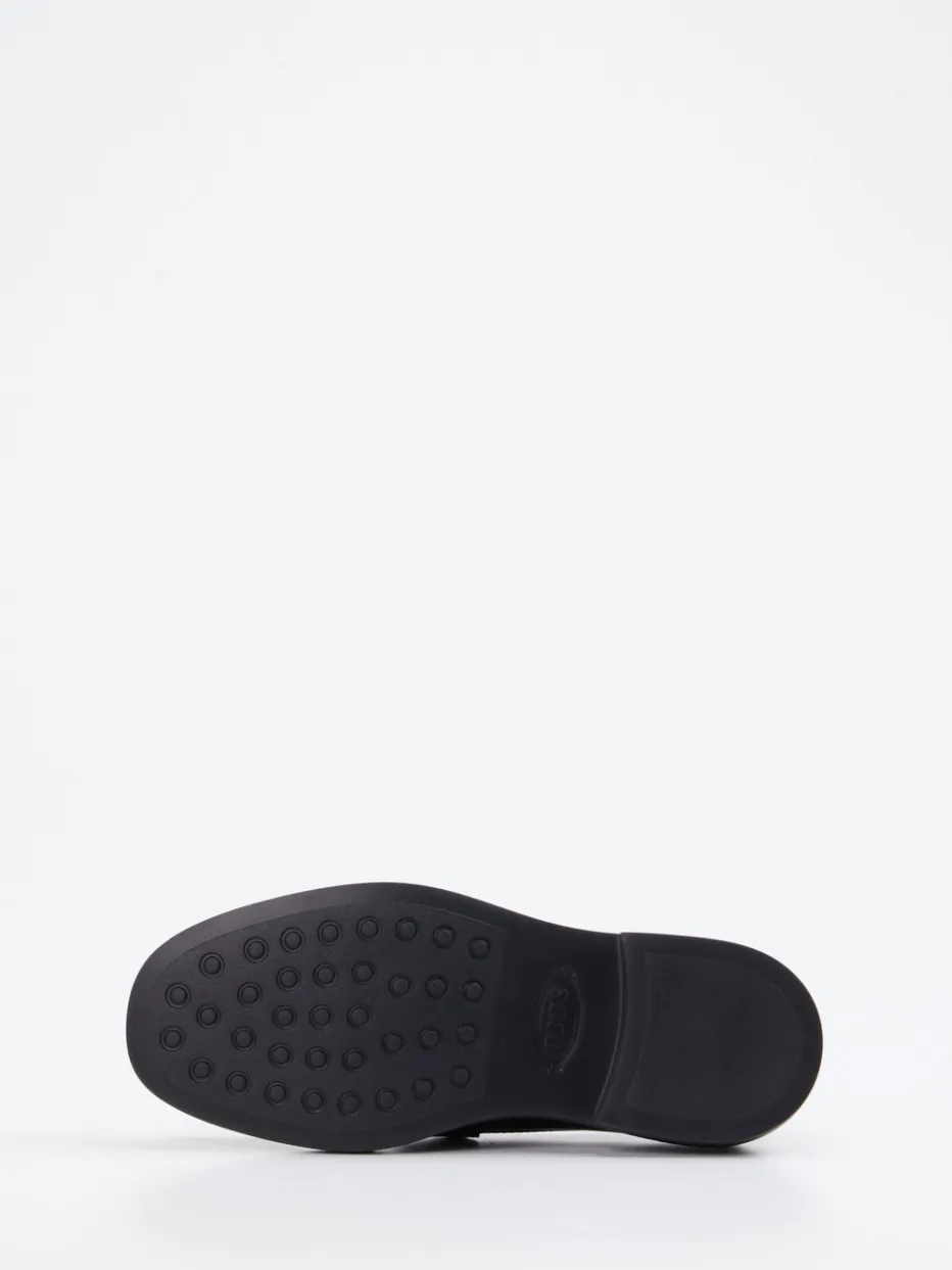 Glänzendes Hochglanzleder und eine goldene Logospange setzen den klassischen Loafer von Tod’s dezent in Szene. Ideal für den ruhigen Luxus-Moment im Alltag oder Business.