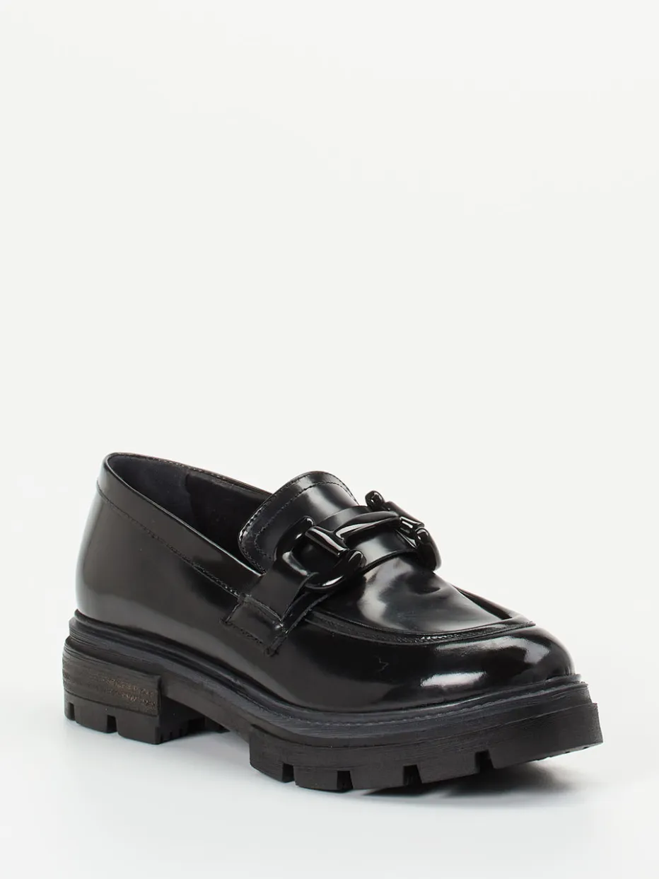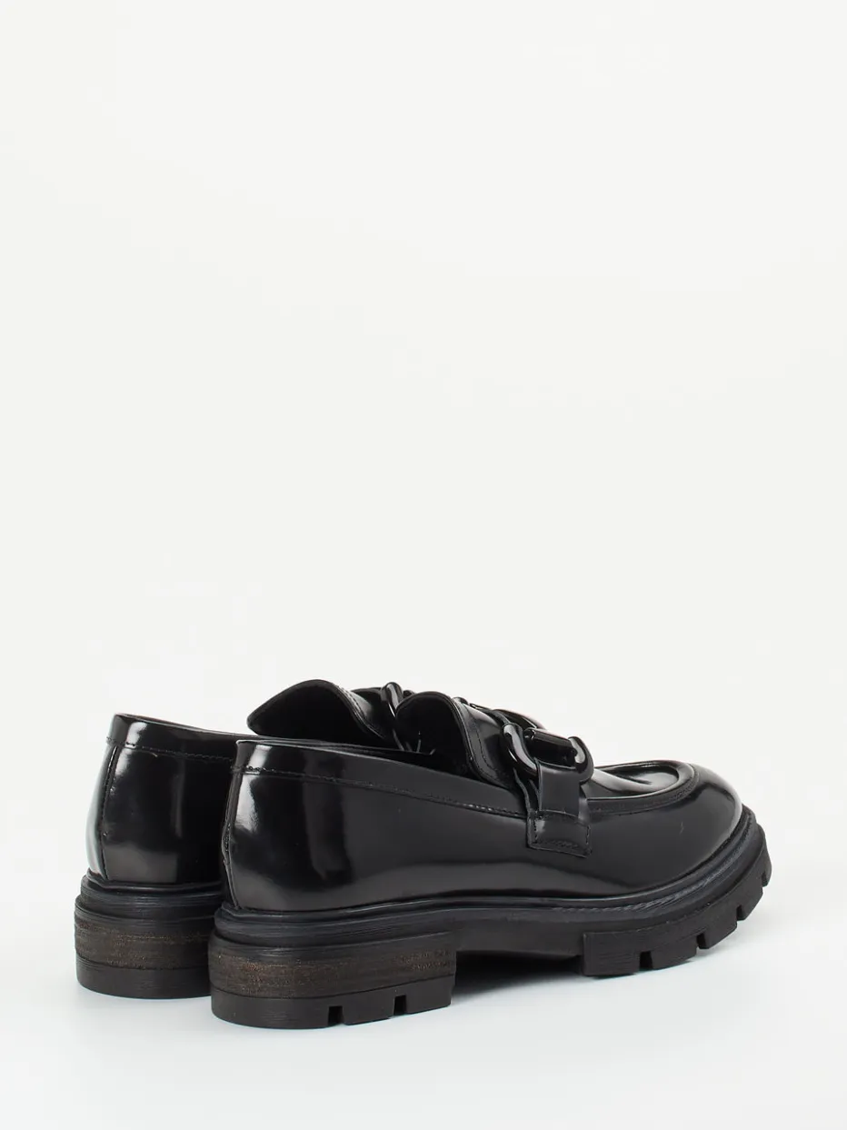 Mit schwarzem Hochglanzleder und markanter Chunky-Sohle verbinden diese Loafer italienische Eleganz mit urbanem Trendbewusstsein – ein Statement für moderne Looks.