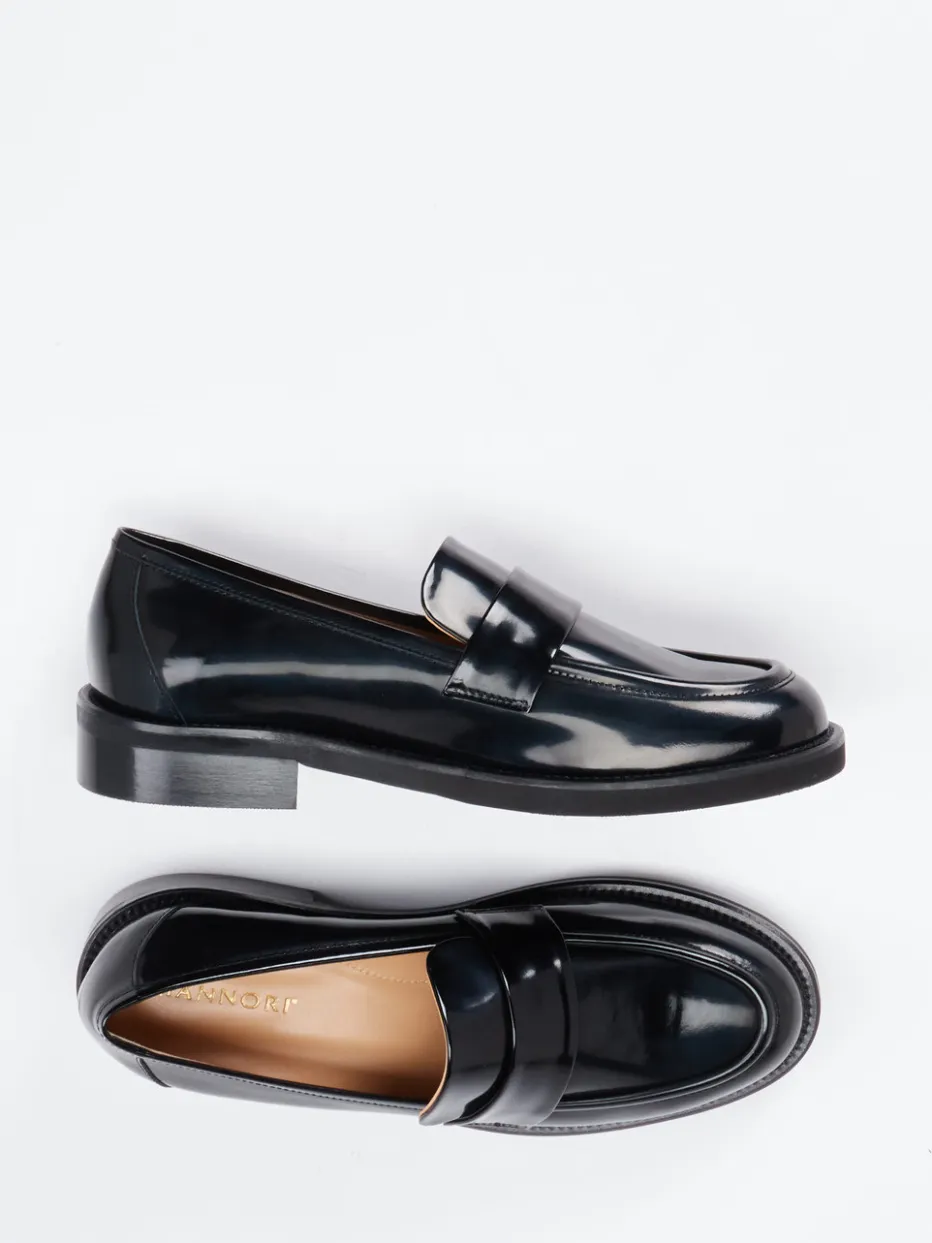 Der Damen-Loafer von Mannori begeistert durch seinen minimalistischen Look mit glänzendem Finish.