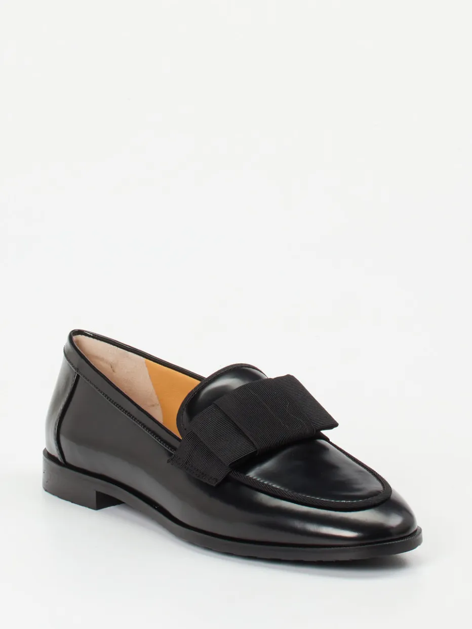 Ein femininer Slipper in edlem Schwarz, der den Preppy-Stil mit minimalistischer Eleganz verbindet. Das glänzende Kalbleder und die tonige Schleife setzen dezente Designakzente.