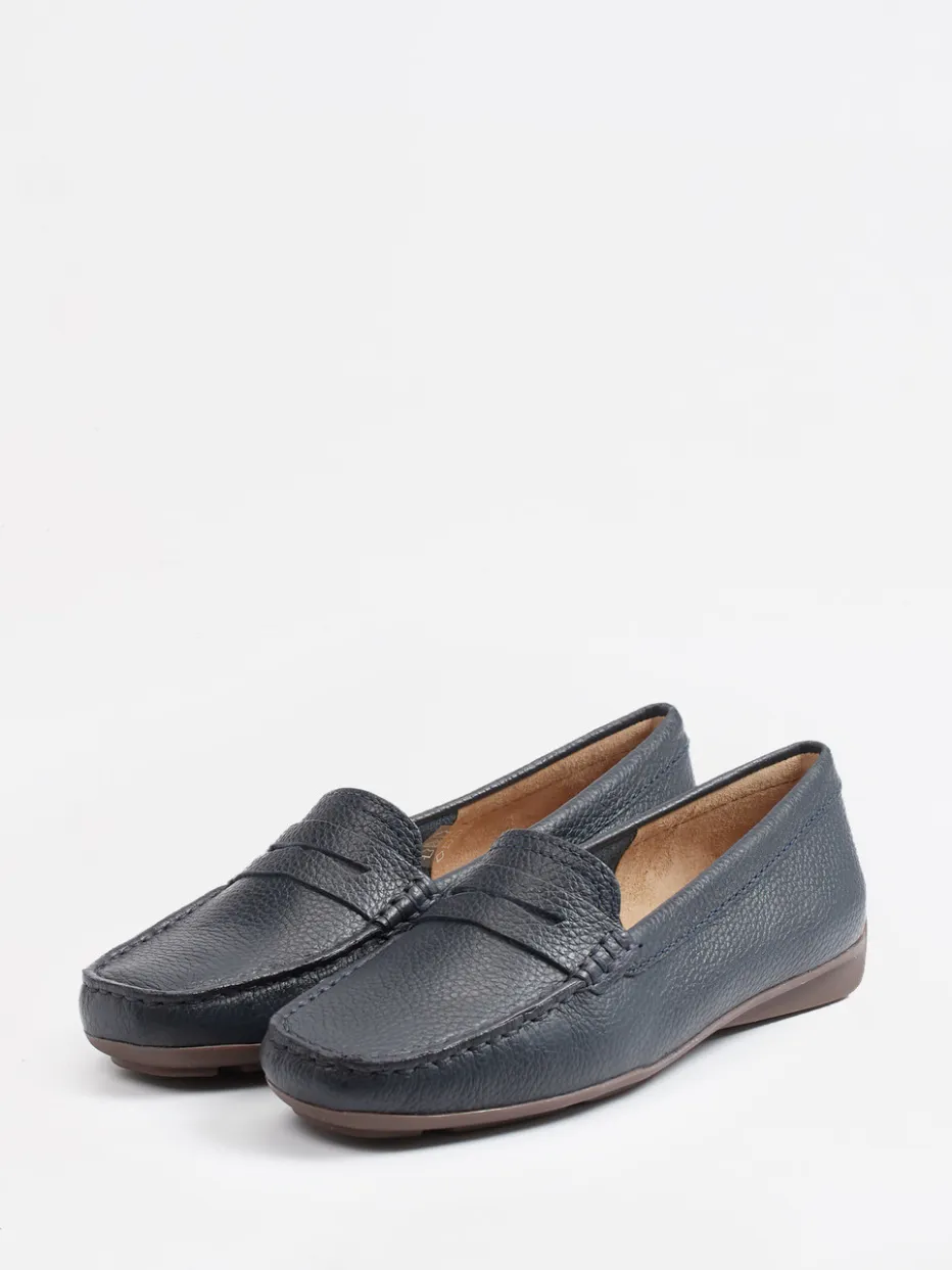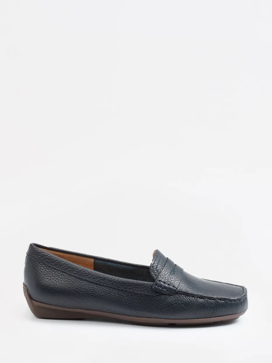 Der Damen-Loafer von Ralph Harrison verbindet genarbtes Kalbleder mit einem klassischen Design in Dunkelblau – ideal für den gepflegten Alltags- oder Businesslook.