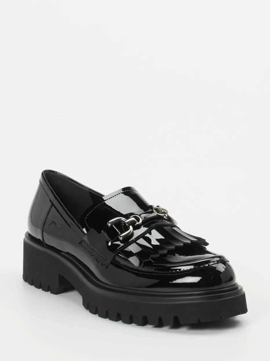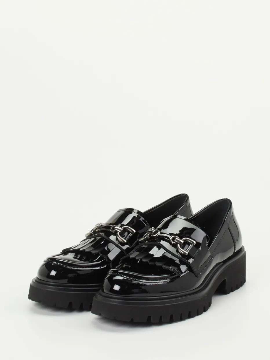 Glanzstücke für stilvolle Auftritte.Konstantin Starke präsentiert diesen luxuriösen Damen-Loafer mit glänzender Oberfläche und klarem modischen Anspruch. Ideal für urbane Looks zwischen Office und Event: Hochwertiges Kalbleder mit spiegelndem Finish sorgt für eine elegante Anmutung, während silberfarbener Trensenschmuck und Fransenbesatz auf der Mokassinblende raffinierte Akzente setzen. Die profilierte Chunky-Sohle in Leichtzellbauweise bringt Komfort und Grip auf herbstlichen Straßen. Klassische Silhouette trifft auf preppy Details im angesagten Streetwear-Kontext – perfekt für stilbewusste Kombinationen mit Oversized-Blazer oder Mini-Bag. Konstantin Starke verbindet feminine Eleganz mit trendorientiertem Design und exzellentem Tragegefühl.