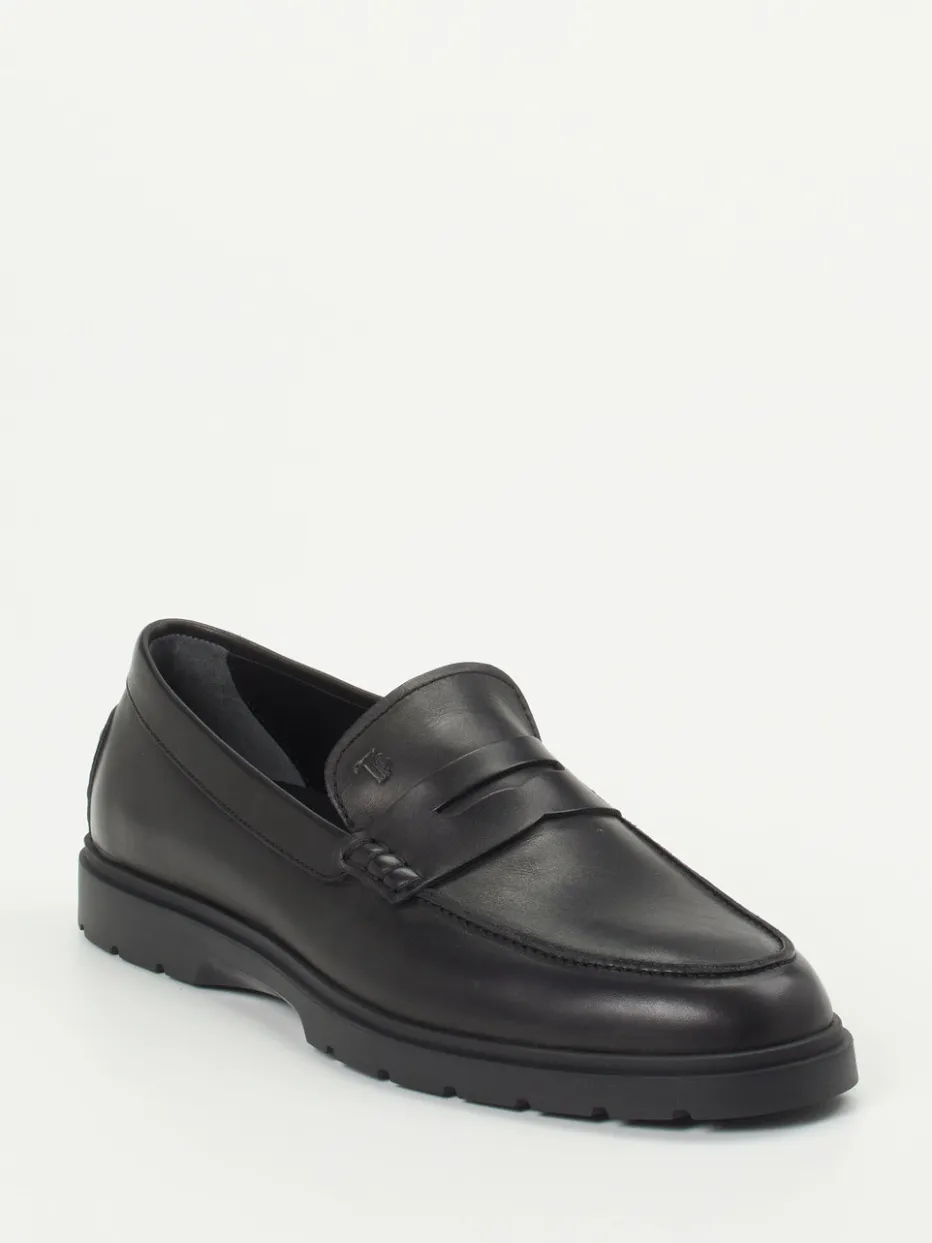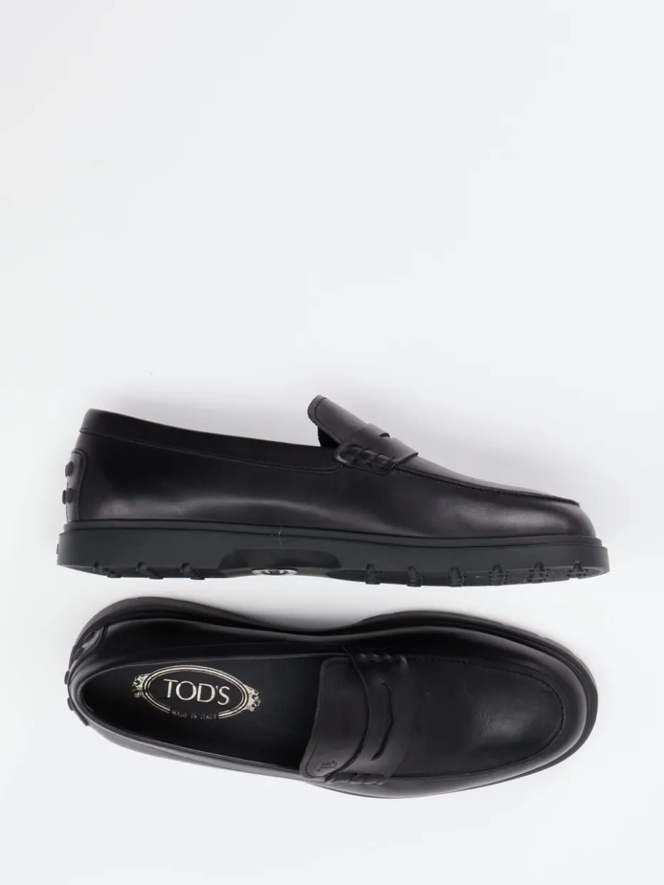 Business trifft italienische Leichtigkeit.Tod’s präsentiert diesen Herren-Loafer als stilvollen Klassiker. Für gepflegte Büro-Outfits oder den eleganten Freizeitlook bietet dieser schwarze Loafer verlässliche Klasse. Das flexible Kalbleder ist matt verarbeitet und zeigt eine dezente Mokassinnaht mit charakteristischer Penny-Slot-Brücke und geprägtem Logo seitlich. Der Einstieg ist bequem durch die offene Schlupfform, während die genoppte Gummisohle für sicheren Halt sorgt – inspiriert vom Italian Heritage und ganz im Sinne des Quiet Luxury. Ideal kombinierbar zu Business-Hose oder dunklem Denim. Komfort, Stil und Handwerkskunst – präzise vereint in einem Signature-Design von Tod’s.