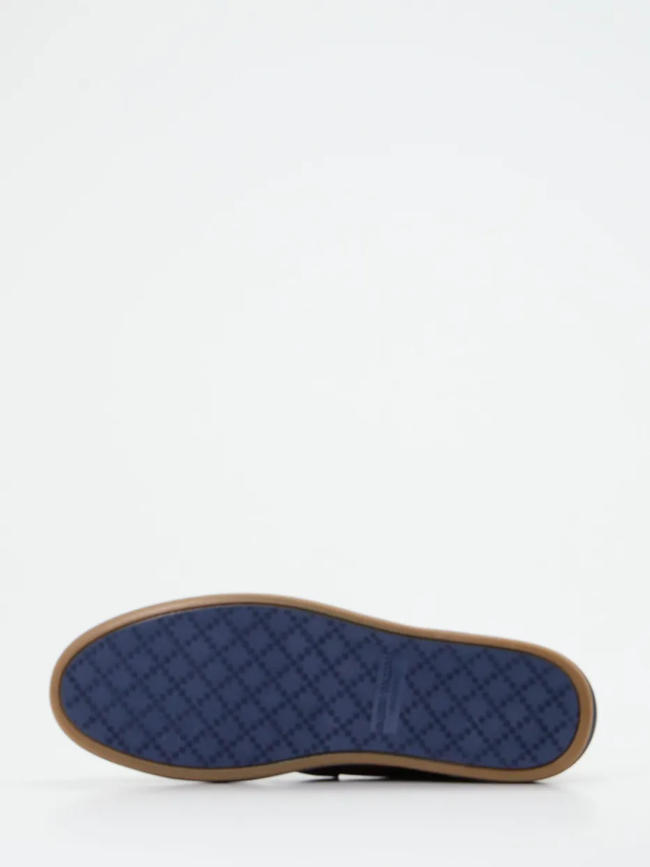 Dieser elegant-sportive Herrenloafer überzeugt durch italienische Handwerkskunst, edles Kalbleder und kontrastreiche Designdetails in Marineblau.
