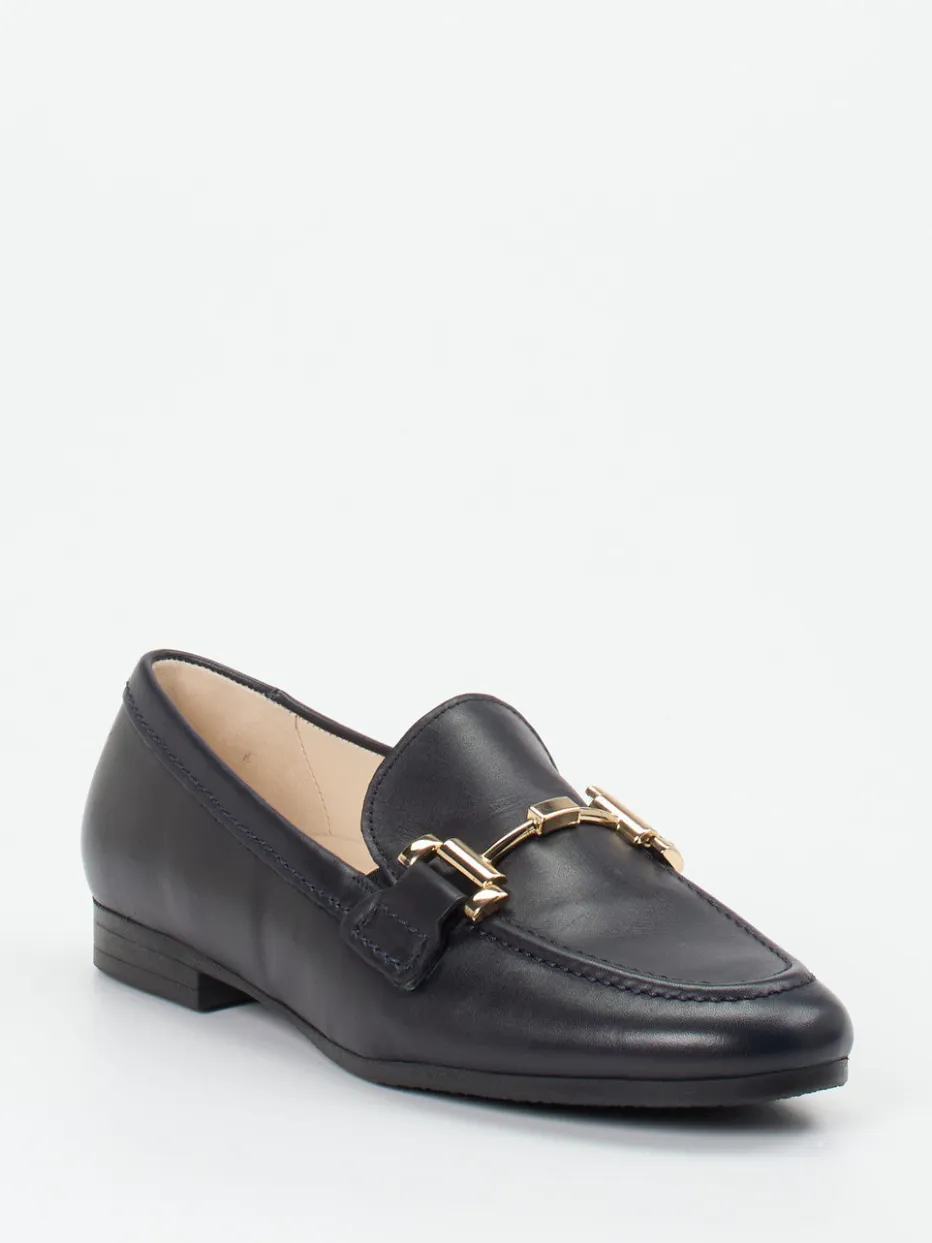 Der Gabor Comfort Loafer kombiniert weiches Kalbleder mit zeitloser Goldspange und dezentem Minimalismus – ideal für stilvolle Auftritte im Alltag und Business.