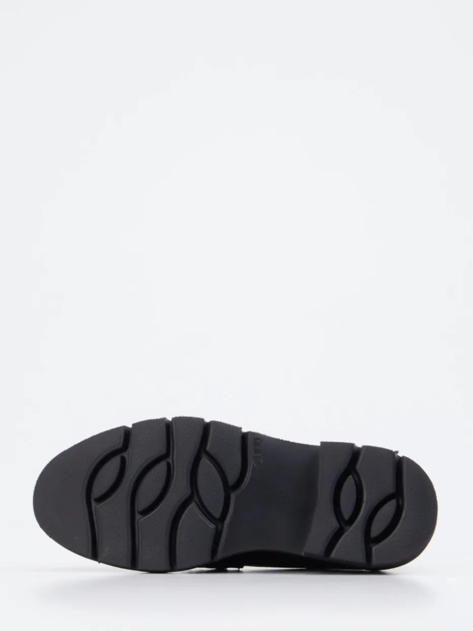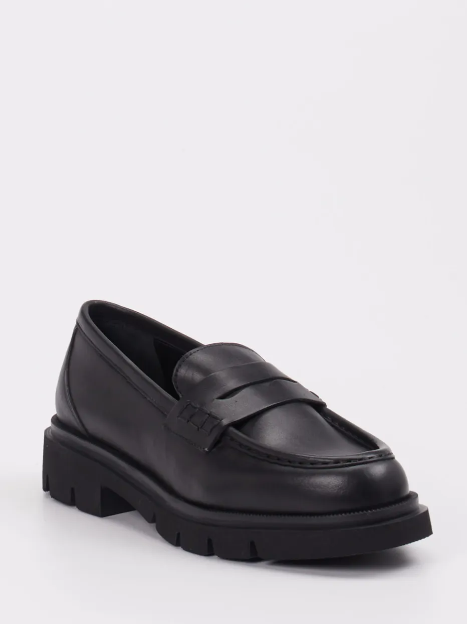 Eleganz trifft urbanen Minimalismus.Konstantin Starke präsentiert einen Loafer für Damen, der den modernen Zeitgeist aufgreift. Ob Büroalltag oder City-Spaziergang – der schwarze Halbslipper verknüpft Komfort und Stil. Gefertigt aus feinem Kalbleder mit matter Oberfläche, zeigt sich das Design betont schlicht mit tonigen Nähten und dezent geprägtem Penny-Riemen. Die breite Leichtzellsohle im Chunky-Look kombiniert klassische Form mit Streetwear-Flair und unterstreicht den aktuellen Heavy Sole Trend. Die schlupffreundliche Silhouette erleichtert das Anziehen. Optimal in Kombination mit schmaler Hose und Oversize-Coat. Minimalistische Formgebung auf hohem Qualitätsniveau – Konstantin Starke steht für stilvolle Zurückhaltung.