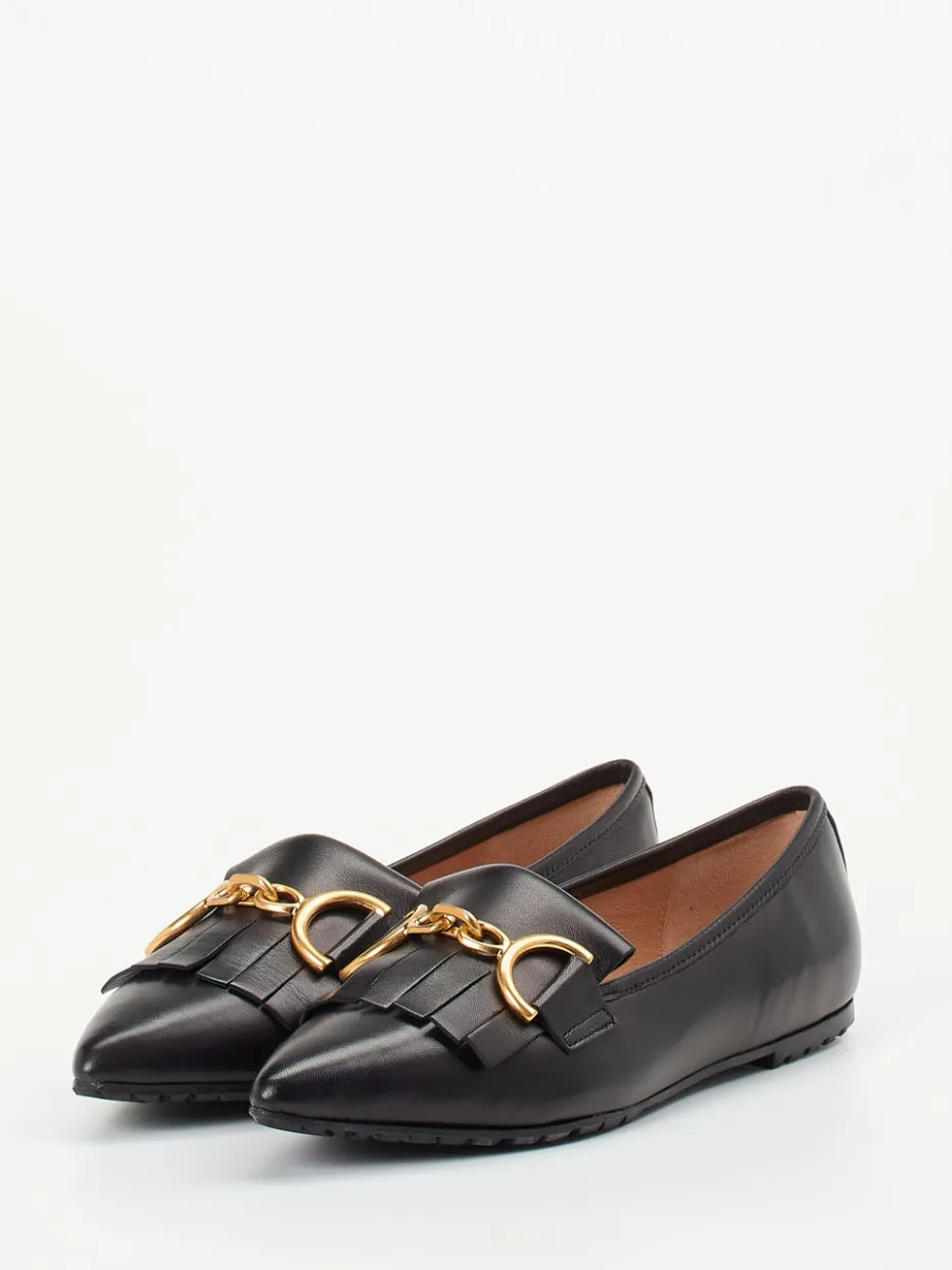 Minimalismus mit Goldakzent.Andrea Puccini präsentiert einen stilvollen Damen-Loafer aus feinem Lammleder. Ideal für gepflegte Büro-Looks oder elegante Alltagssituationen bietet dieser Slipper durch spitz zulaufende Form, schlupffreundliche Konstruktion und flache profilierte Gummisohle Komfort und sicheren Tritt. Die glänzende Oberfläche wird durch eine goldfarbene Kette, Fransenlasche und minimalistische Silhouette in Szene gesetzt – perfekt im Trend „Quiet Luxury“. Der raffinierte Materialmix mit innenliegendem Ziegenlederfutter sorgt für angenehmes Tragegefühl. Kombiniert zu Stoffhose oder Culotte entfaltet dieses Modell zeitlose Wirkung mit Stilbewusstsein. Ein Essential für klassische Garderoben – markenbewusst und hochwertig interpretiert.