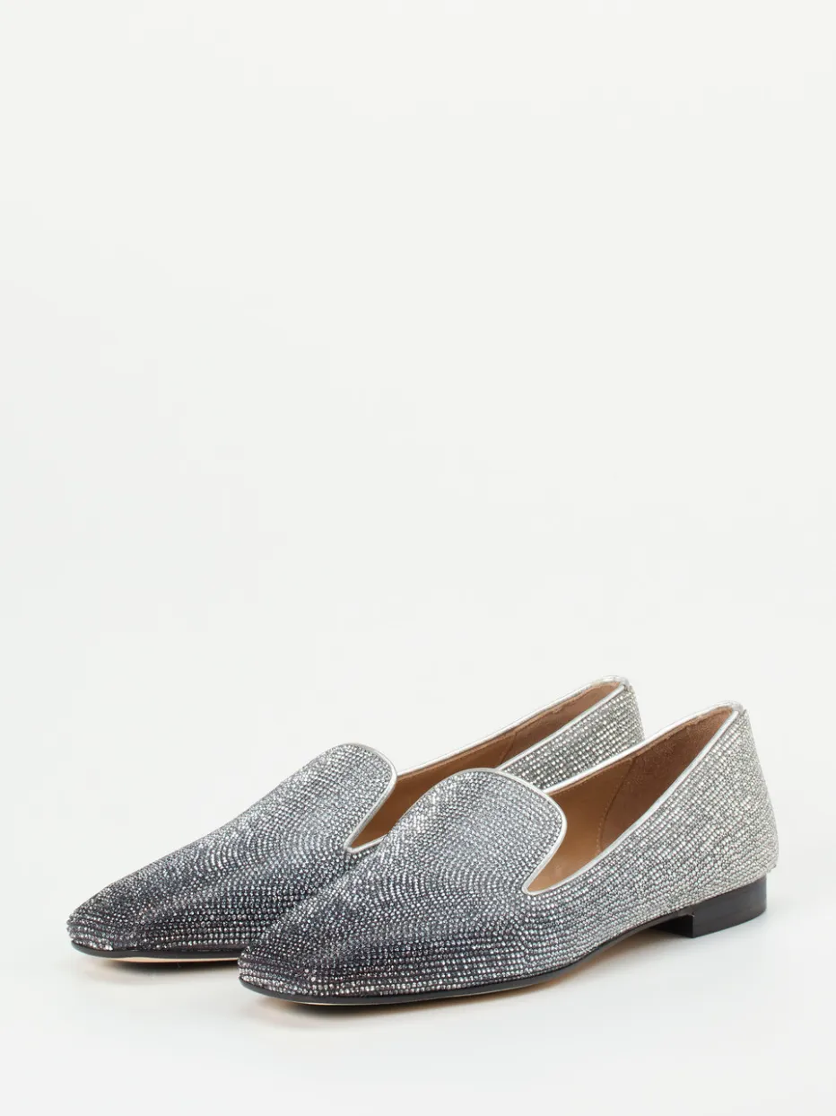 Mit glanzvollem Strassbesatz und elegantem Farbverlauf interpretiert dieser Damen-Loafer von Konstantin Starke die klassische Silhouette festlich-modern.