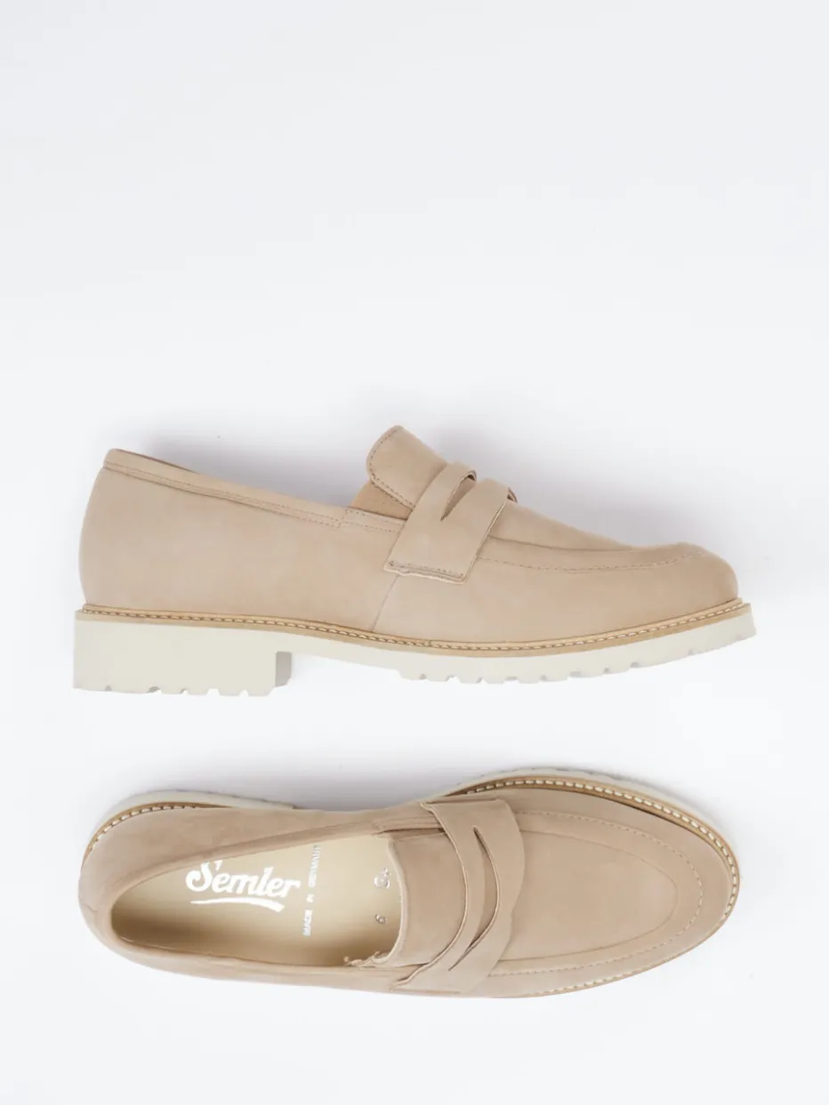 Stilvoller Komfort für jeden Tag.Der Loafer aus dem Hause Semler überzeugt als femininer Trotteur in beigem Nubukleder mit matt-samtiger Oberfläche. Ideal für Tage voller Termine: Die gepolsterte Innensohle und die griffige Profilsohle sorgen für hohen Gehkomfort bei jedem Schritt. Das klassische, niedrig geschnittene Design wird durch einen dezenten Penny-Steg betont. Feine Ton-in-Ton-Nähte und eine helle Laufsohle mit Ziernaht unterstreichen die hochwertige Verarbeitung. Als Schlupfschuh mit Leder-/Textilfutter eignet er sich für stilbewusste Trägerinnen mit Sinn für klare Formen und dezente Trends wie Quiet Luxury. Perfekt zu Chinos oder leichten Sommerhosen. Semler steht für komfortable Passform mit eleganter Leichtigkeit.