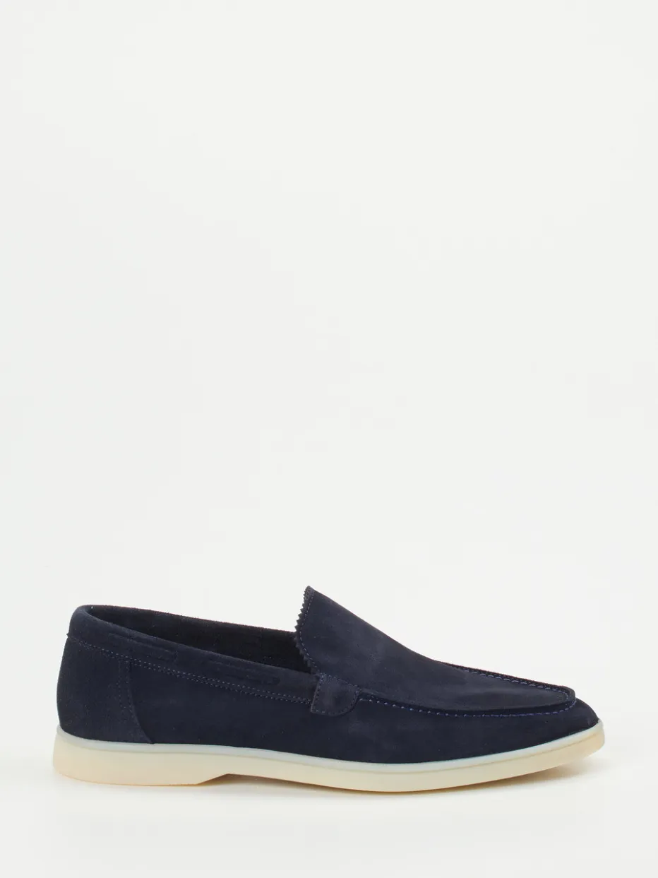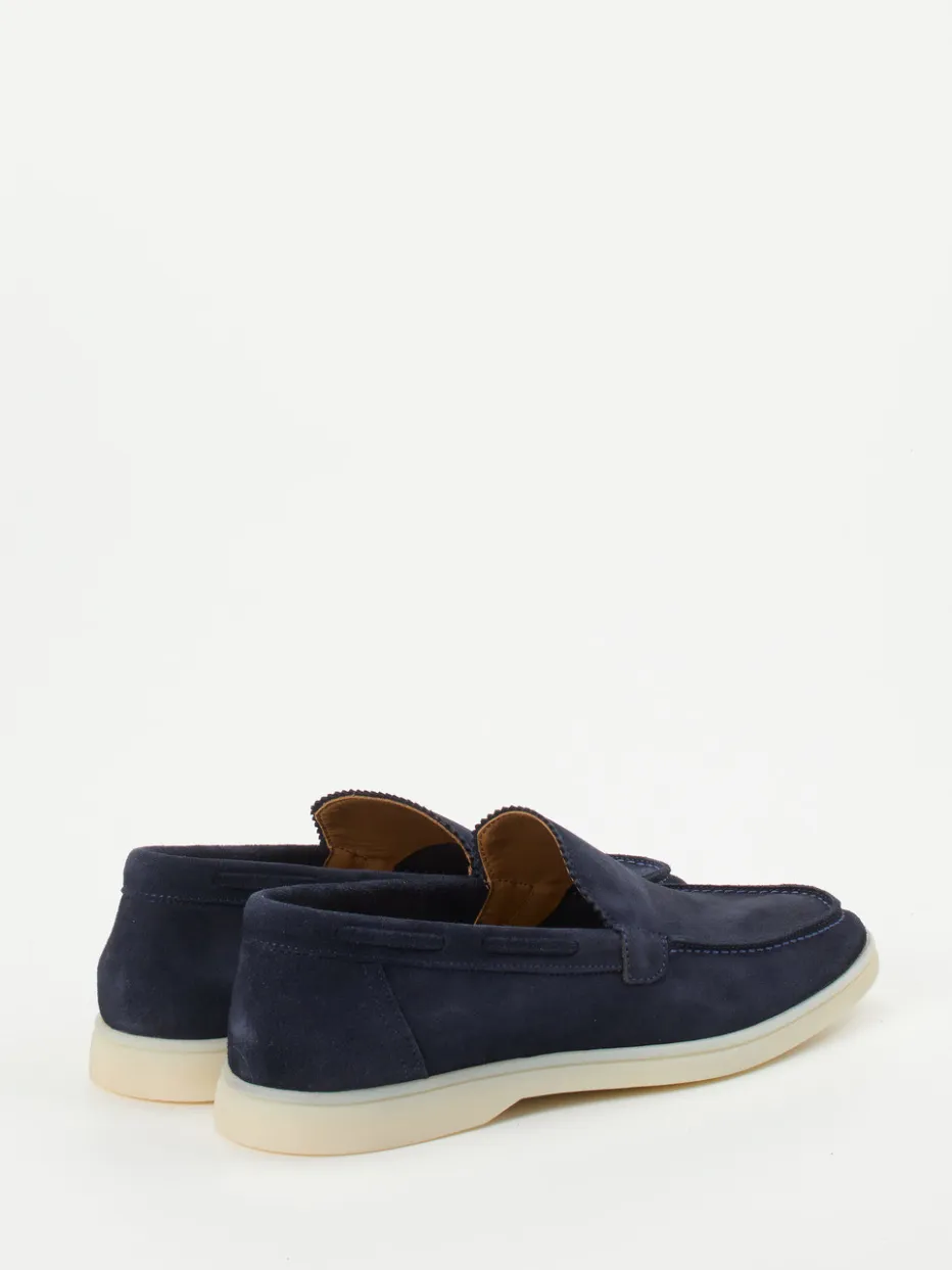 Ideal bei Warmwettertagen im Büro oder in der Stadt sorgt das dunkelblaue, samtig angeschliffene Veloursleder für eine edle Anmutung. Die flache, klassische Silhouette erhält durch die wellenförmige Zunge und die helle Kontrastsohle subtile Akzente. Dank flexibler Gummisohle, herausnehmbarem Fußbett und kalblederbezogener Innensohle überzeugt der Schuh auch funktional. Das cleane Design ist inspiriert vom Preppy-Stil und greift den „Quiet Luxury“-Trend auf. Kombiniert mit Chinohose und Ledergürtel entsteht ein gepflegter Look.