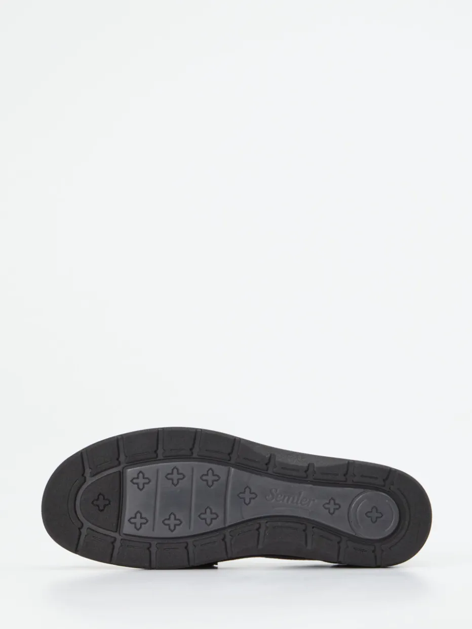 Dieser Loafer von Semler vereint klassischen Stil mit moderner Funktionalität. Hochwertiges Veloursleder, eine komfortable Sohle und dezente Highlights machen ihn zum souveränen Begleiter im Alltag und Büro.